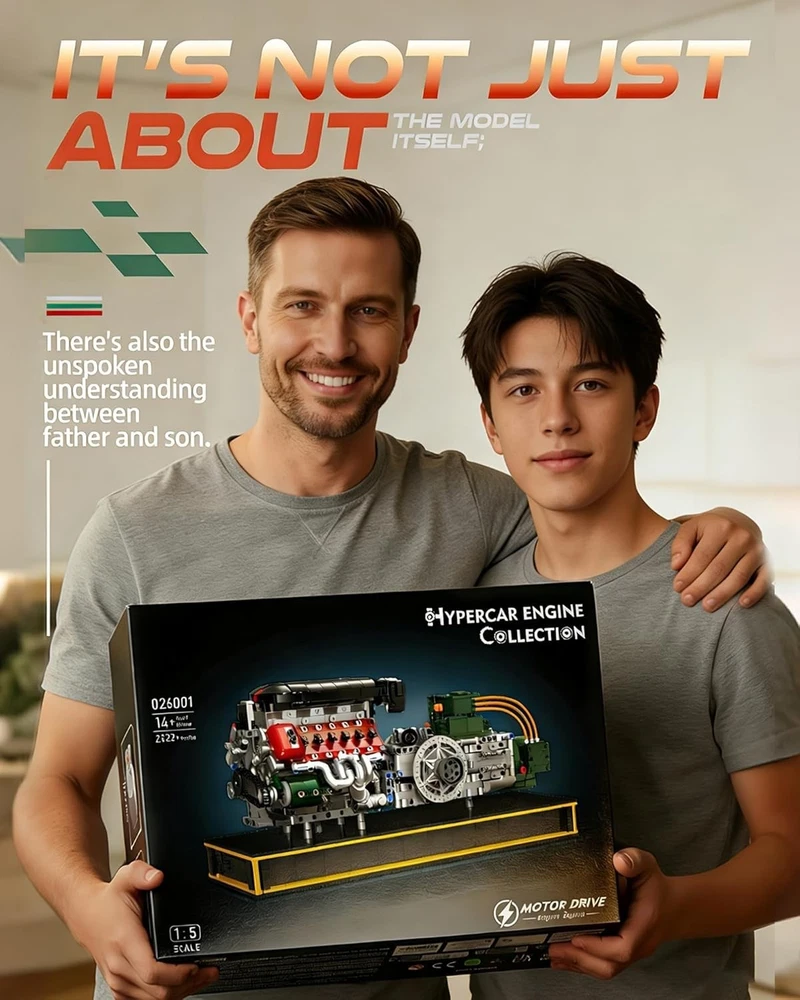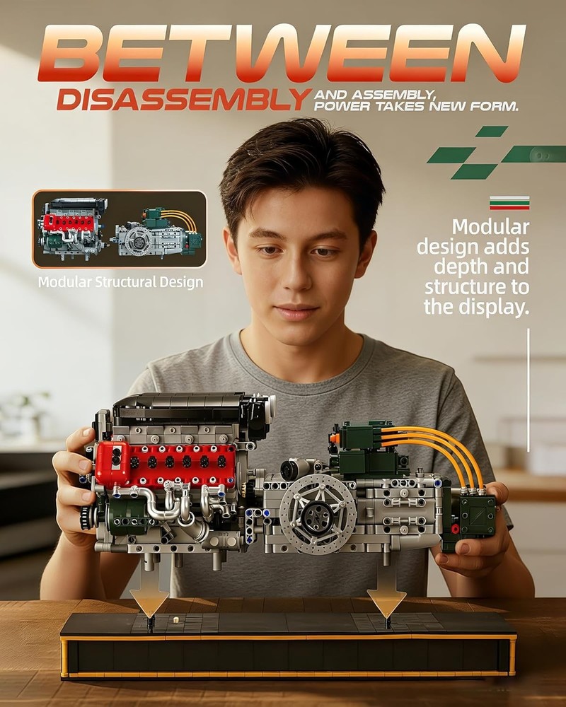 【Realistic V12 Engine Building Kit】 Measured 16.3*5*7.6 in(L*W*H) and 1:5 scale model of a high-performance V12 engine with 2322 pieces, this V12 engine building kit features moving pistons, a rotating crankshaft, and a belt-driven system that mimics the mechanical operation of a real V12 engine. 【Power It Up & Watch It Run】 Compatible with technic engine building set, included L-motor and battery box (requires 6 AAA batteries, not included), this is a fully functional V12 engine kit that runs, with a smooth, rhythmic motion that showcases the engine’s internal workings. 【Build your Own Engine Model】Designed for adults and teens 14+, this challenge engine kit offers a rewarding building experience. Perfect for technic hobbyists, engineers, and car enthusiasts to understand engine mechanics while enjoying a satisfying, screen-free project. 【Fun Building Challenge】 Once assembled, this stunning model becomes an impressive desktop showcase. With its premium design and a stable base—from the carefully crafted components to the dynamic motion—it’s a conversation-starting piece for your office, workshop, or man cave. 【Collectible Gift】 Come with clear and step-by-step instructions to guide you through the assembly. No special tools needed—just your creativity and passion for mechanical wonders. MOCBROPCS are here to provide professional service. The V12 Engine Model Kit is a detailed replica of a car engine that allows you to build your own mini engine model. With 1366 pieces made of plastic, this kit is designed for adult hobbyists and enthusiasts. It requires 1 lithium ion battery and comes with an instruction guide for assembly. The compact package dimensions of 11.8 x 8.66 x 3.94 inches make it easy to store and transport. Made in the United States, this engine model kit is a fun and challenging project for anyone interested in car-themed projects.