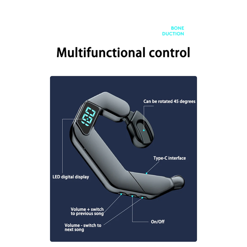 Description: Name: V19 Bluetooth-compatible headset; Bluetooth-compatible version: V5.2; Speaker: open speaker; Battery: 300MAH; Battery life: about 12 hours; Charging time: 2 hours; Bluetooth-compatible distance: about 15 meters; Duration of listening to songs: 48H; Standby time: 68H; Full time: 1H; Supported functions: music playback, pause. Answer the call, reject it. battery display, automatic reconnection, calling siri voice assistant, etc., caller number. Packing list: Headphones x 1 Data cable x 1 Instructions x 1 Paper box x 1 Note: Due to manual measurement, please allow 1-3 cm error, thank you Due to screen and other objective reasons, there may be a certain color difference, please understand.