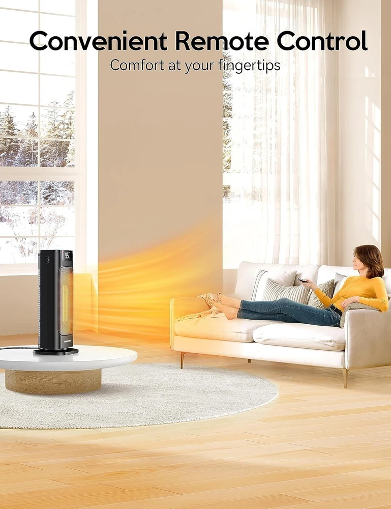 About this item 90°Oscillation: Compared to other space heaters, the VAGKRI space heater provides 90° widespread oscillation, which helps distribute the warm air more evenly toward the room's corners. It is perfect for bedrooms, basements, garages, living rooms, offices, hot yoga studios, etc Fast Heating: With a powerful 1500W PTC ceramic heater, the VAGKRI electric heater can heat up in seconds, you will feel balmy heat straight away and your whole body wrapped in toasty warmth very fast Three Modes: This heater for indoor use allows you to choose the mode you like(High/Low/ECO Mode), you also can customize your warmth from 41℉ to 95℉ in 1℉ increments. And save more on energy bills with ECO mode that adapts the heat automatically to maintain your comfort Quiet Heating: Less than 37db performance, the noise of space heaters for indoor use is so low that you’d practically hear nothing when the ceramic heater is running(Quiet like a library). Enjoy a warm, silent, and comfy room Multi-Protection Safety Features: Made of V0-rated flame-retardant materials, ETL-listed electric heaters come with multiple security features including overheat protection, tip-over protection, a 12-hour timer, and 24-hour automatic power off without interaction Easy To Use: The digital panel on the top of the portable heater is very easy to reach, just one touch to control the heater. The remote control provides full access up to 30 feet away. Space-saving and easy to store Shipping We offer FREE shipping on all orders! We ship within Three business days of payment, usually sooner. We use a selection of shipping services such as UPS, FedEx, USPS etc. We only ship to the lower 48 states, no APO/FPO addresses or PO Boxes allowed. Local pickups and combined shipping options are not provided at this time. Return You can return a product for up to 30 days from the date you purchased it. Any product you return must be in the same condition you received it and in the original packaging. Please keep the receipt. Payment We accept payment by any of the following methods: PayPal Please pay as soon as possible after winning an auction, as that will allow us to post your item to you sooner! Feedback Customer satisfaction is very important to us. If you have any problem with your order, please contact us and we will do our best to make you satisfied. Contact Us If you have any queries, please contact us via ebay. We usually respond within 24 hours on weekdays. Please visit our eBay store to check out other items for sale! Thank you for shopping at our store. Disclaimer We are working with different suppliers in USA to deliver the item to your doorstep. If you have any issues regarding the item, Feel free to ask.