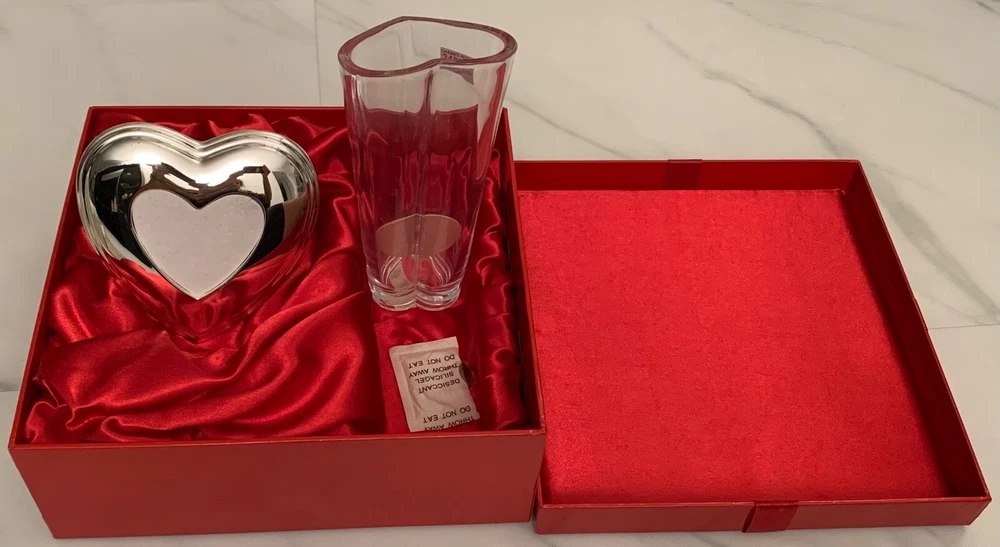 VALENTINES DAY GIFT BASKET/ BOX FOR HER . Christal vase and picture frame are included. Variety PAPYRUS Valentine’s Day Greeting Card listed separately.