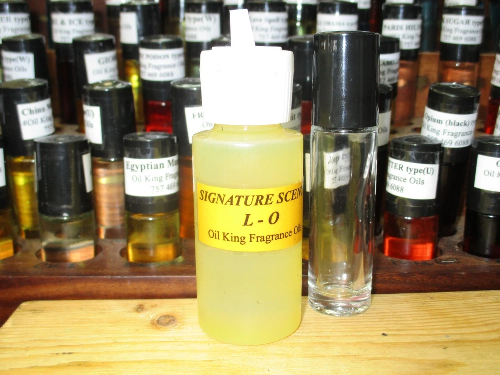 OIL KING FRAGRANCE OILS. Hello Friend. Thank you for your Interest. For Sale: Your Choice of One 1oz. Plastic Spout Bottle of a SIGNATURE SCENT " M " and a 1/3 oz. Roll-on Vial. Pure Superior Quality Fragrance Oil. For Crafts, Burning or Body. Strong Scent that Last Long. SIGNATURE SCENTS . "Top Tier Popular Oil Fragrances." *The Fragrances Types on this List have no Connection to any Trademark or Designer Perfume Manufactures. They are Not Original or Imitations of Designer Perfumes. They are Our Version of Fragrance Oils. Color of Oil May Be Different From Photo.