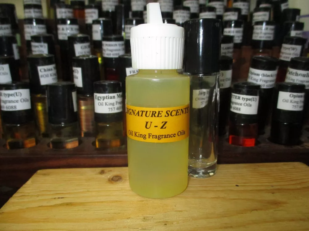 OIL KING FRAGRANCE OILS. Hello Friend. Thank you for your Interest. For Sale: Your Choice of One 1oz. Plastic Spout Bottle of a SIGNATURE SCENT " W " and a 1/3 oz. Roll-on Vial. Pure Superior Quality Fragrance Oil. For Crafts, Burning or Body. Strong Scent that Last Long. SIGNATURE SCENTS . "Top Tier Popular Oil Fragrances." *The Fragrances Types on this List have no Connection to any Trademark or Designer Perfume Manufactures. They are Not Original or Imitations of Designer Perfumes. They are Our Version of Fragrance Oils. Color of Oil May Be Different From Photo.