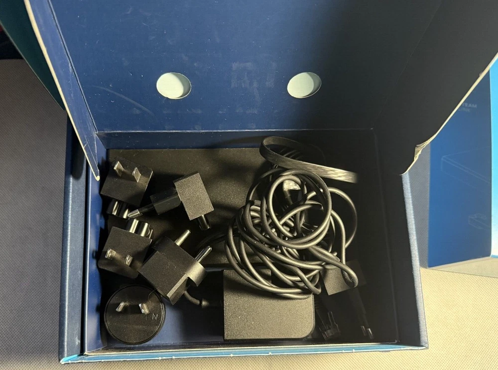 good condition, comes with everything shown in picture. Box is slightly damaged throughout buy with caution.