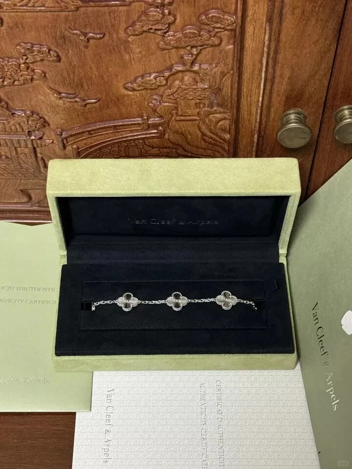 VAN CLEEF & ARPELS 18K White Gold 5 Motifs Guilloche Vintage Alhambra Bracelet