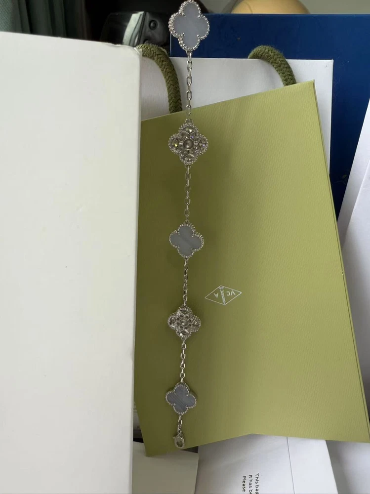 VAN CLEEF & ARPELS 18K White Gold 5 Motifs Guilloche Vintage Alhambra Bracelet