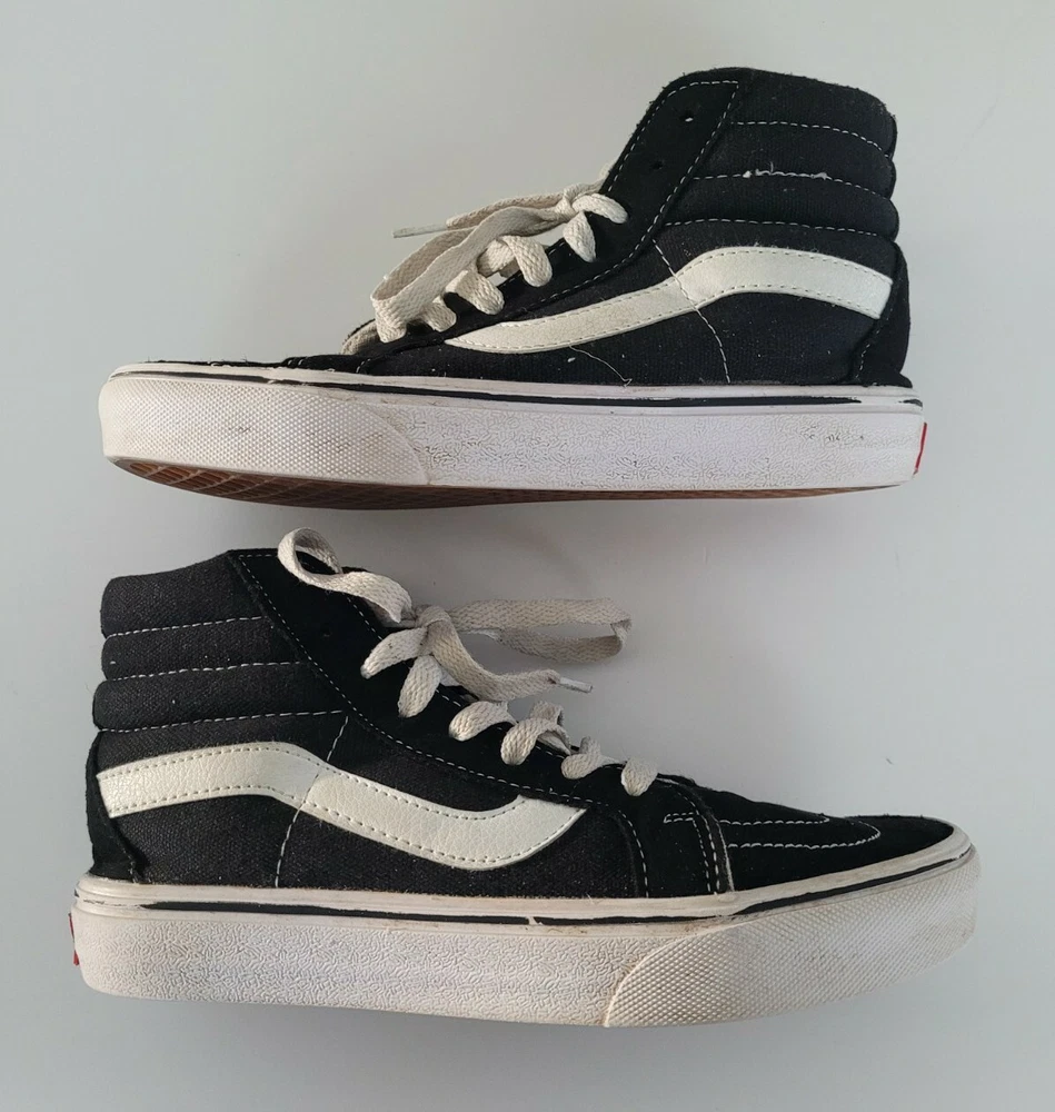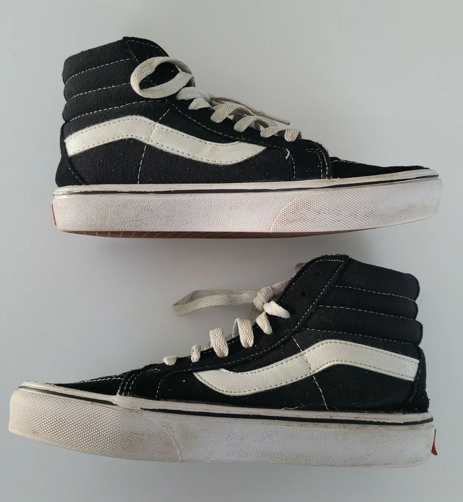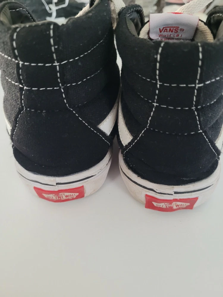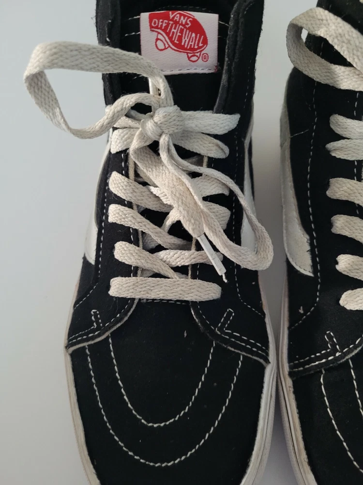 VANS HIGH TOP MENS SKATE SHOE SIZE 5 US Women 6.5 BLACK W/WHITE TRIM