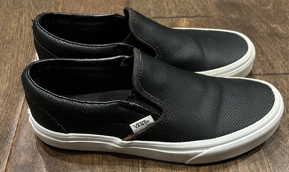 Brand:VANSDepartment:Unisex AdultsColor:BlackStyle:SneakerPerformance/Activity:SkateboardingClosure:Slip OnType:AthleticModel:VANS Off The WallUpper Material:LeatherUK Shoe Size:4.5US Shoe Size:Mens 5.5 Women 7