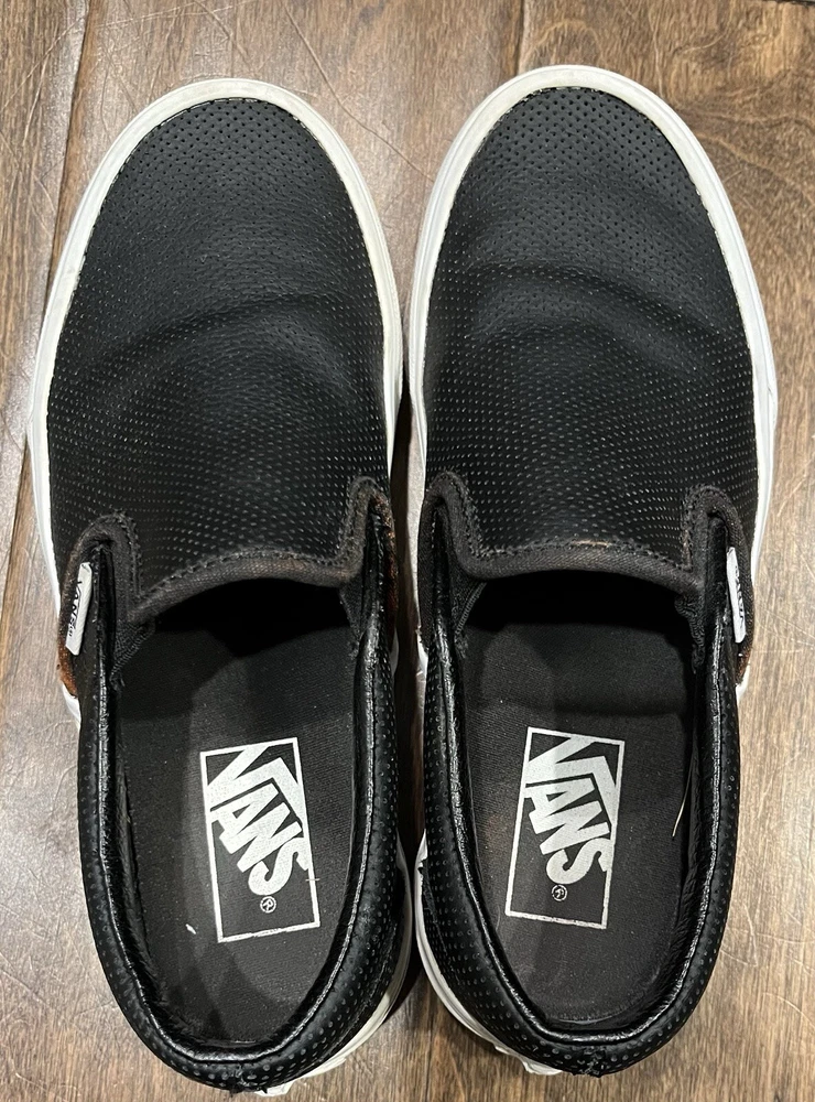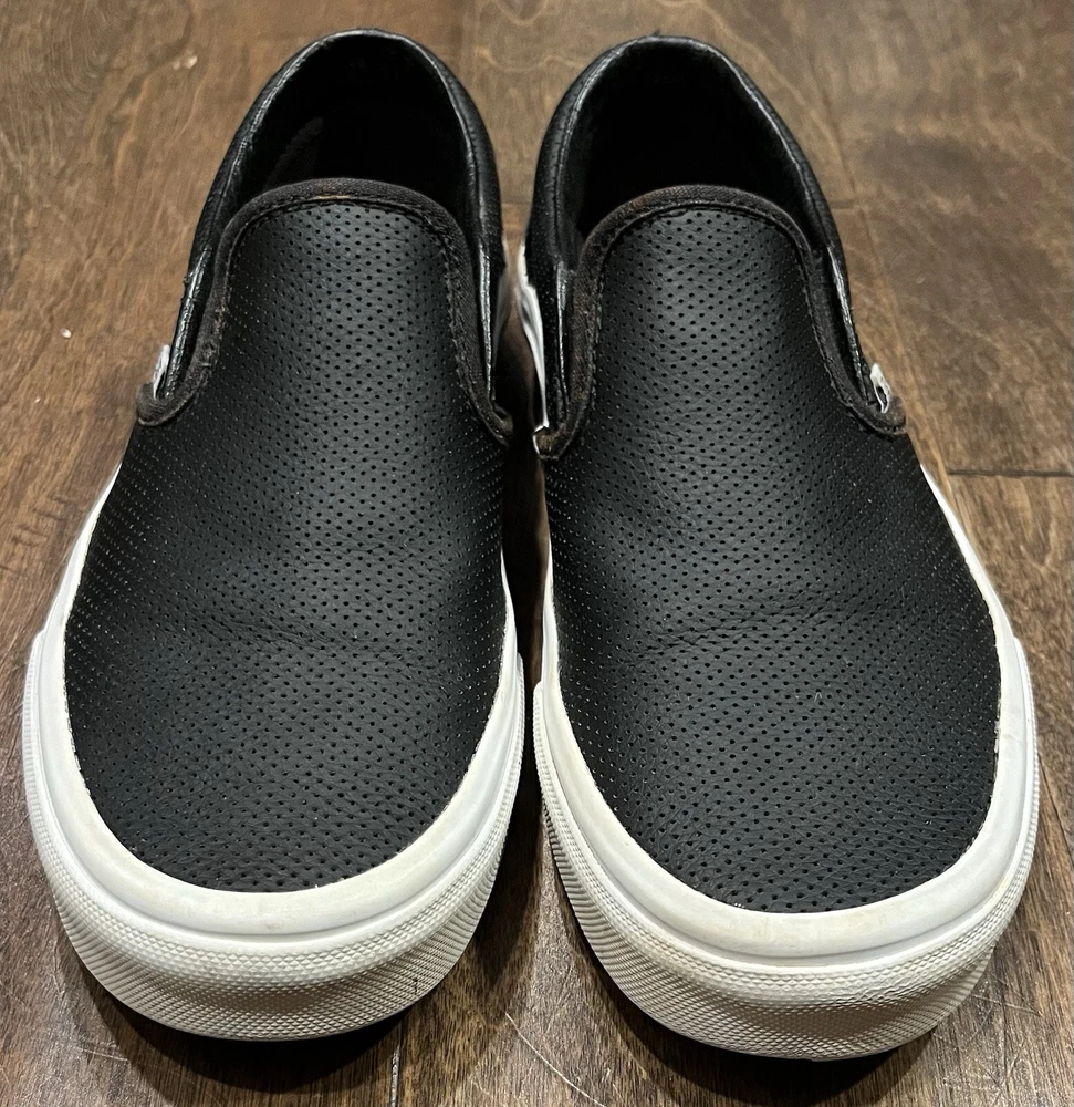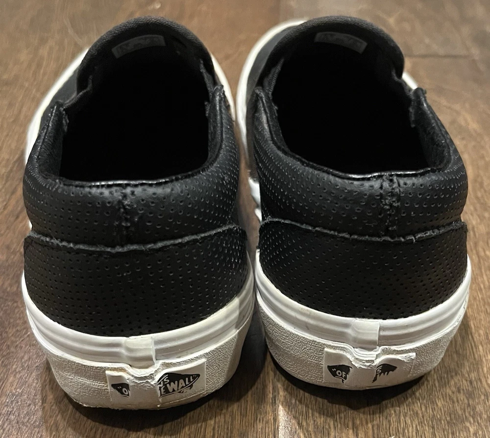 VANS Off The Wall Perforated Leather Black Slip On Skate Shoe Mens 5.5 Womens 7