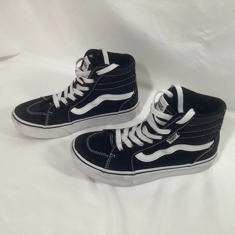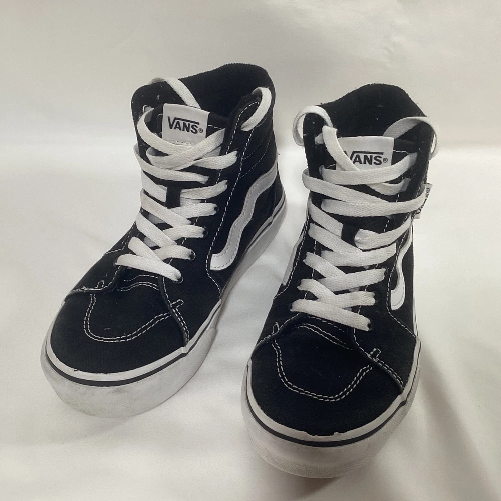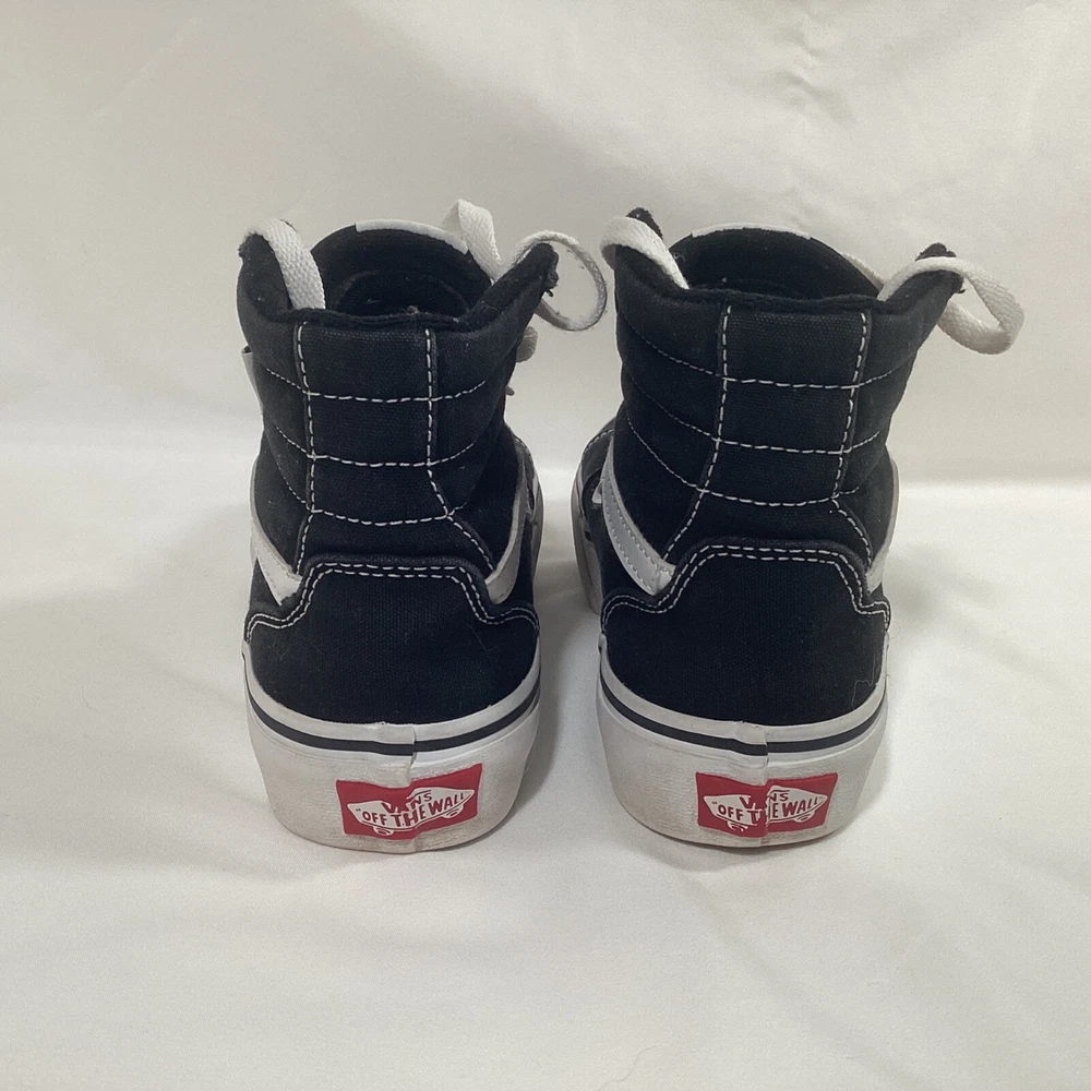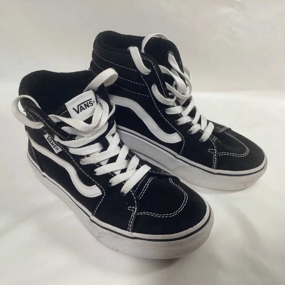 VANS Off The Wall Sk8-Hi Skate Shoes High Top Sneaker Black Lace Up Kids Size 3 Pre-owned in Good Condition. Please see photos for quality, condition and size details. 157B3/6