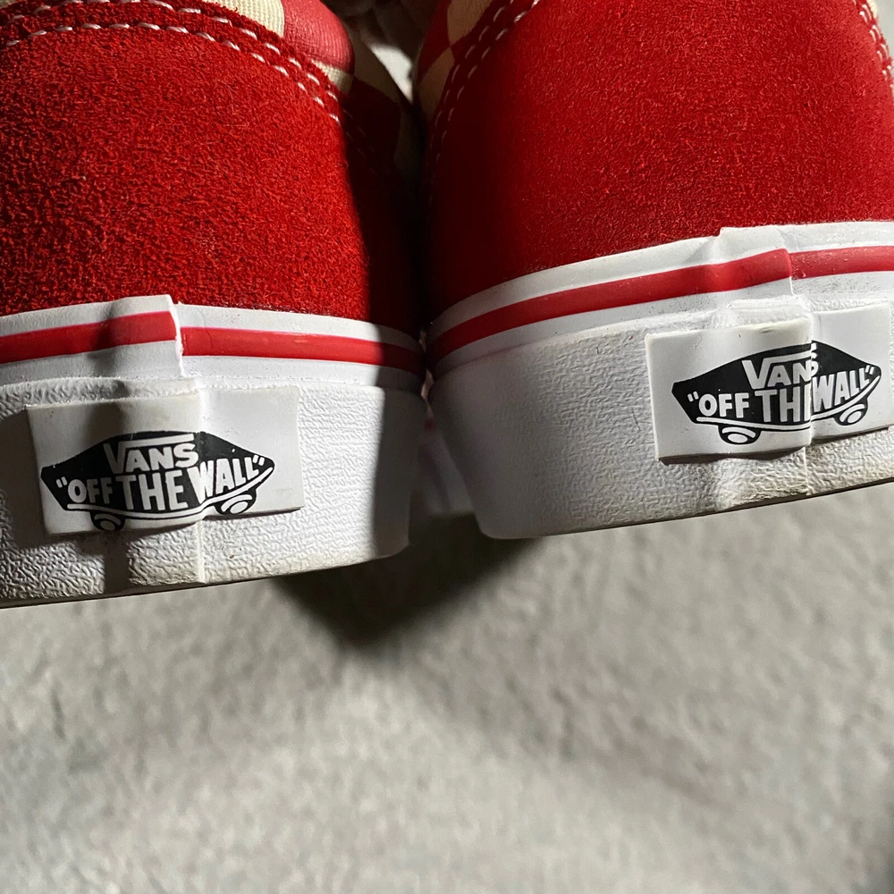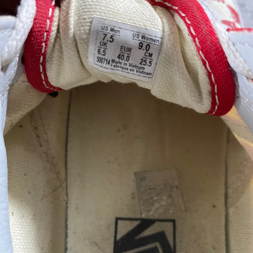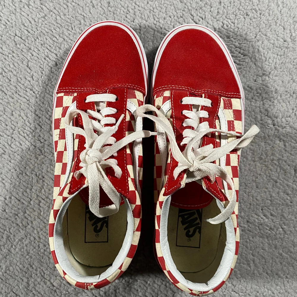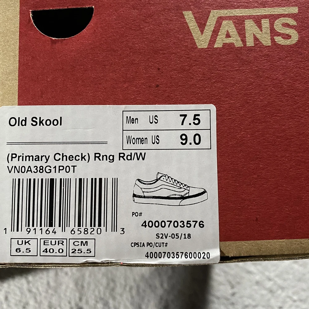 VANS Old Skool Crimson Red White Checker Skate Shoes Men Sz 7.5 Wmn's 9