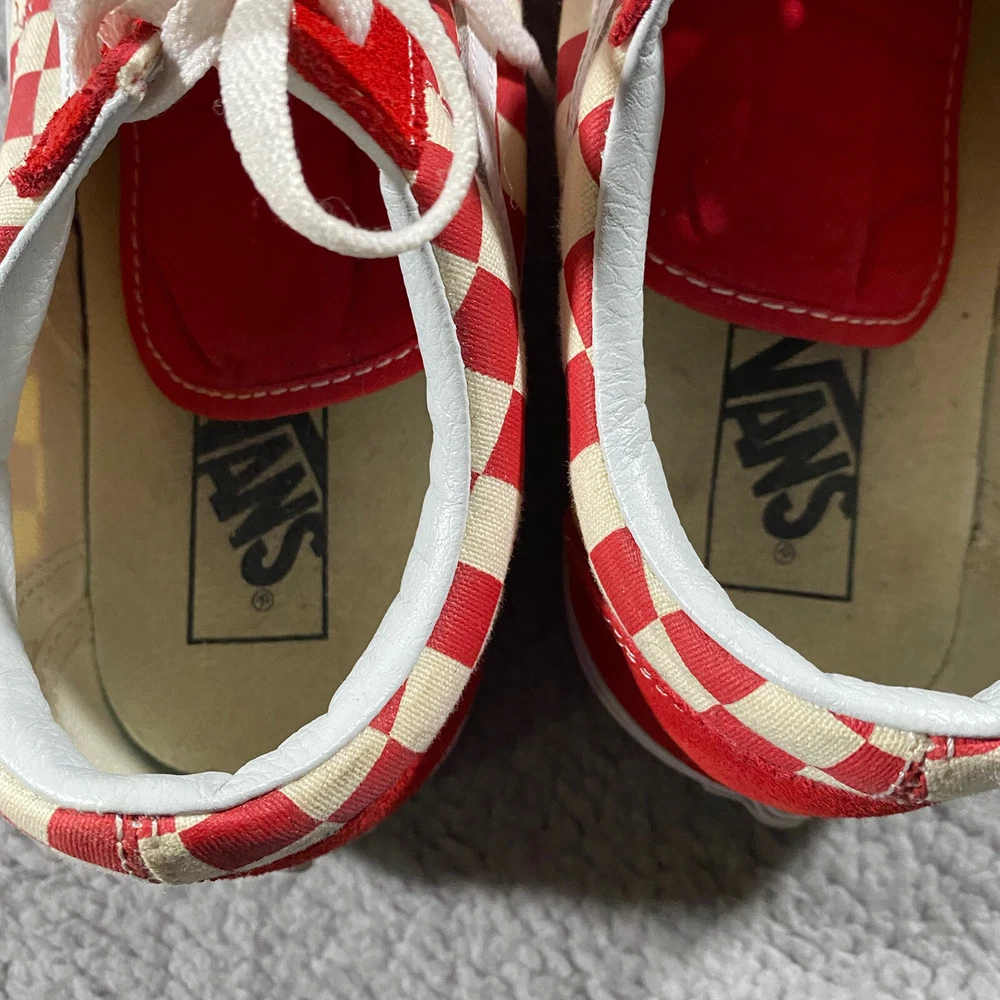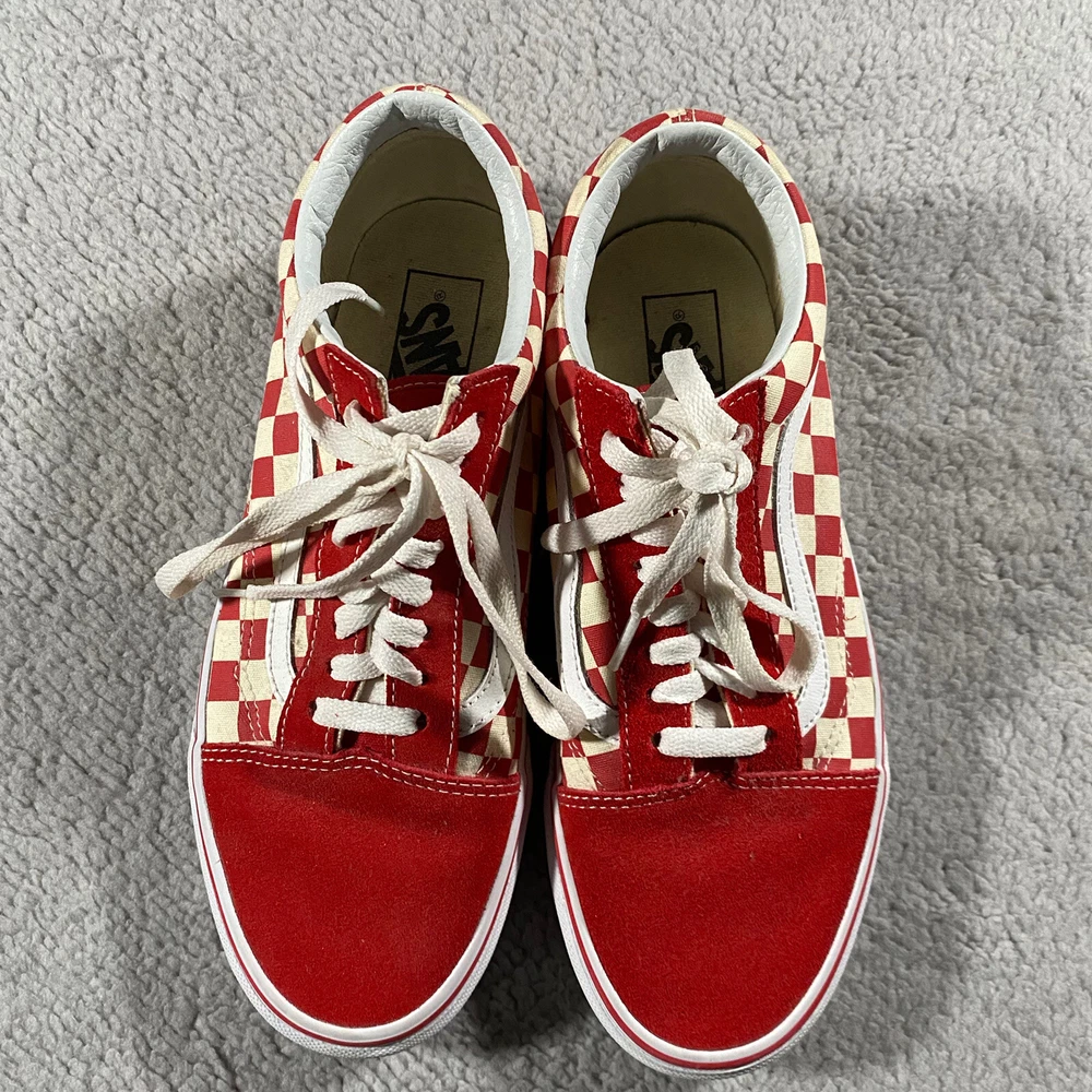 VANS Old Skool Crimson Red White Checker Skate Shoes Men Sz 7.5 Wmn's 9.