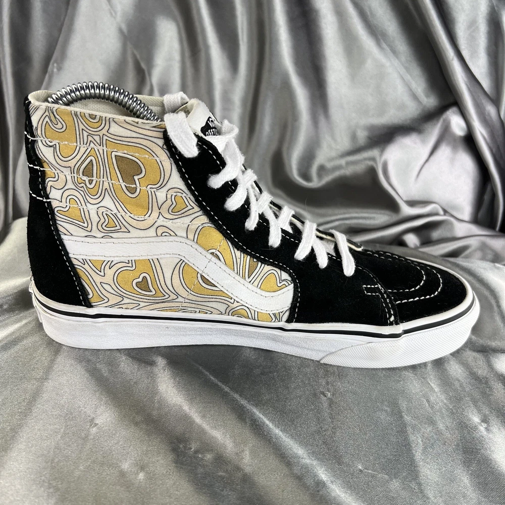 VANS SK8-HI Tapered Trippy Hearts Shoes Womens 8 Men 6.5 Beige/Black Suede/White