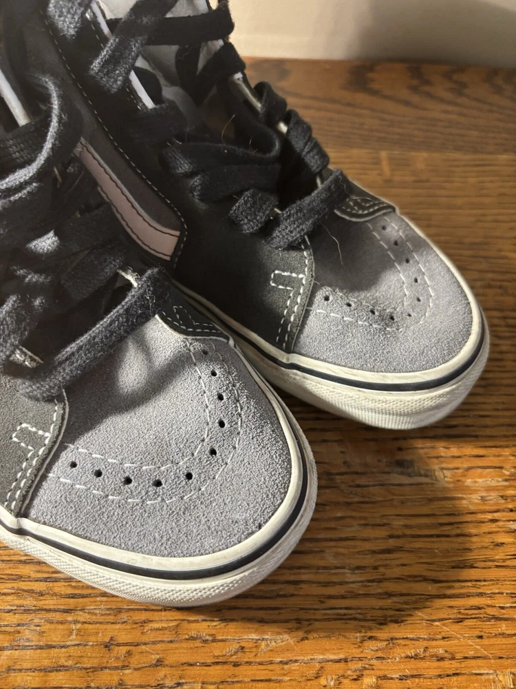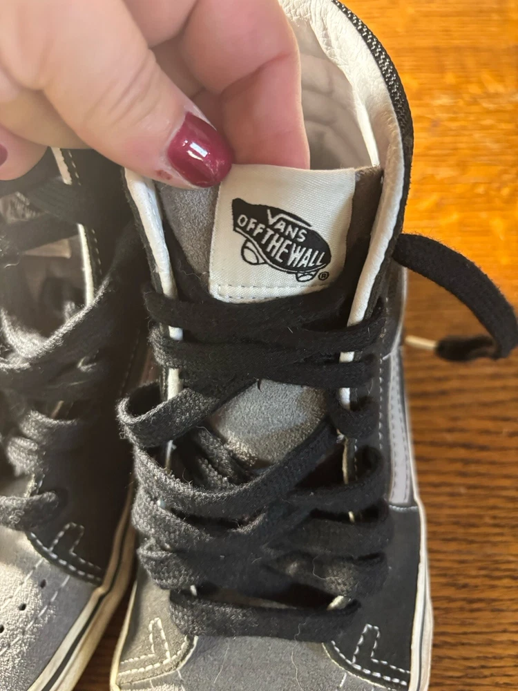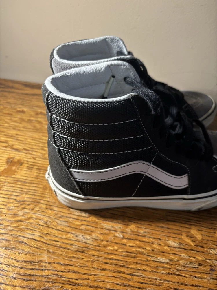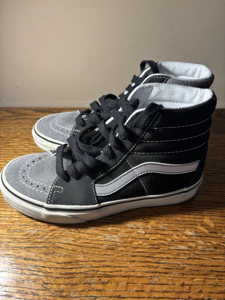 Step up your skateboarding game with these stylish VANS Sk8 Hi Skate sneakers. The black and gray colorblock pattern adds a touch of edginess to your outfit, while the lace-up closure ensures a secure fit. The rubber outsole provides excellent traction, making them perfect for cruising around town or hitting the skate park. These sneakers are designed for both men and women, with a Men's UK shoe size of 3 and a US shoe size of 4, Women's US 5.5. The suede upper material is comfortable and durable, and the VANS Sk8 model is a classic that will never go out of style. Whether you're a seasoned skater or just starting out, these sneakers are a great addition to your collection.