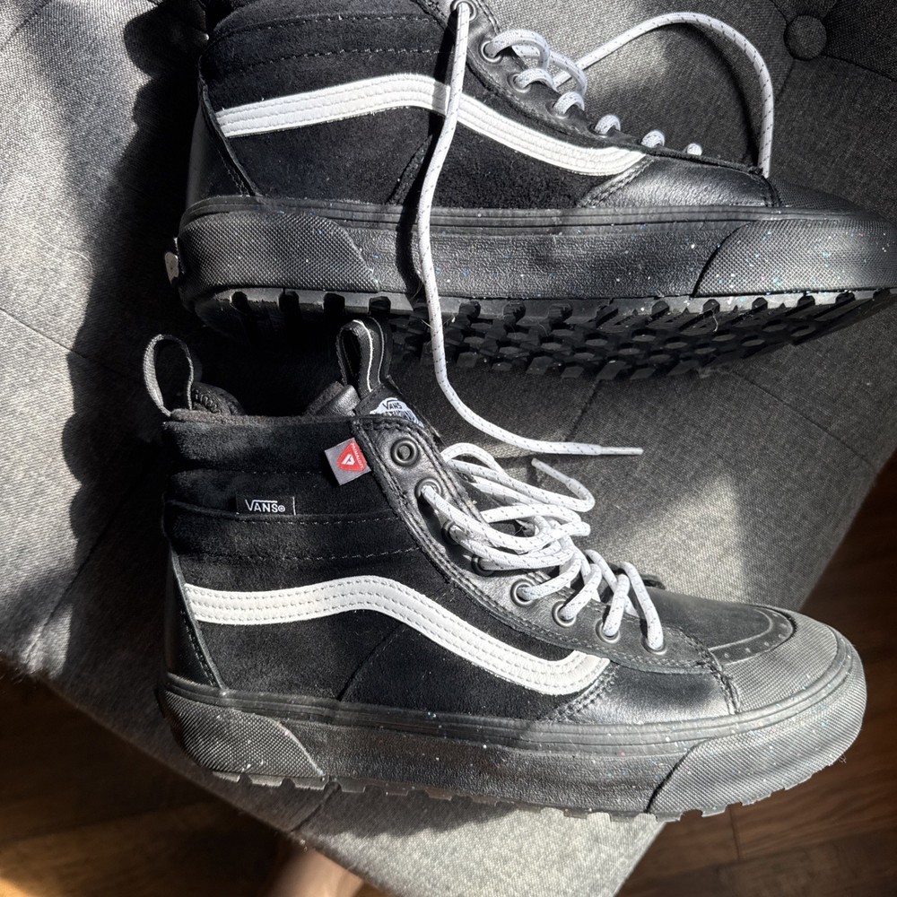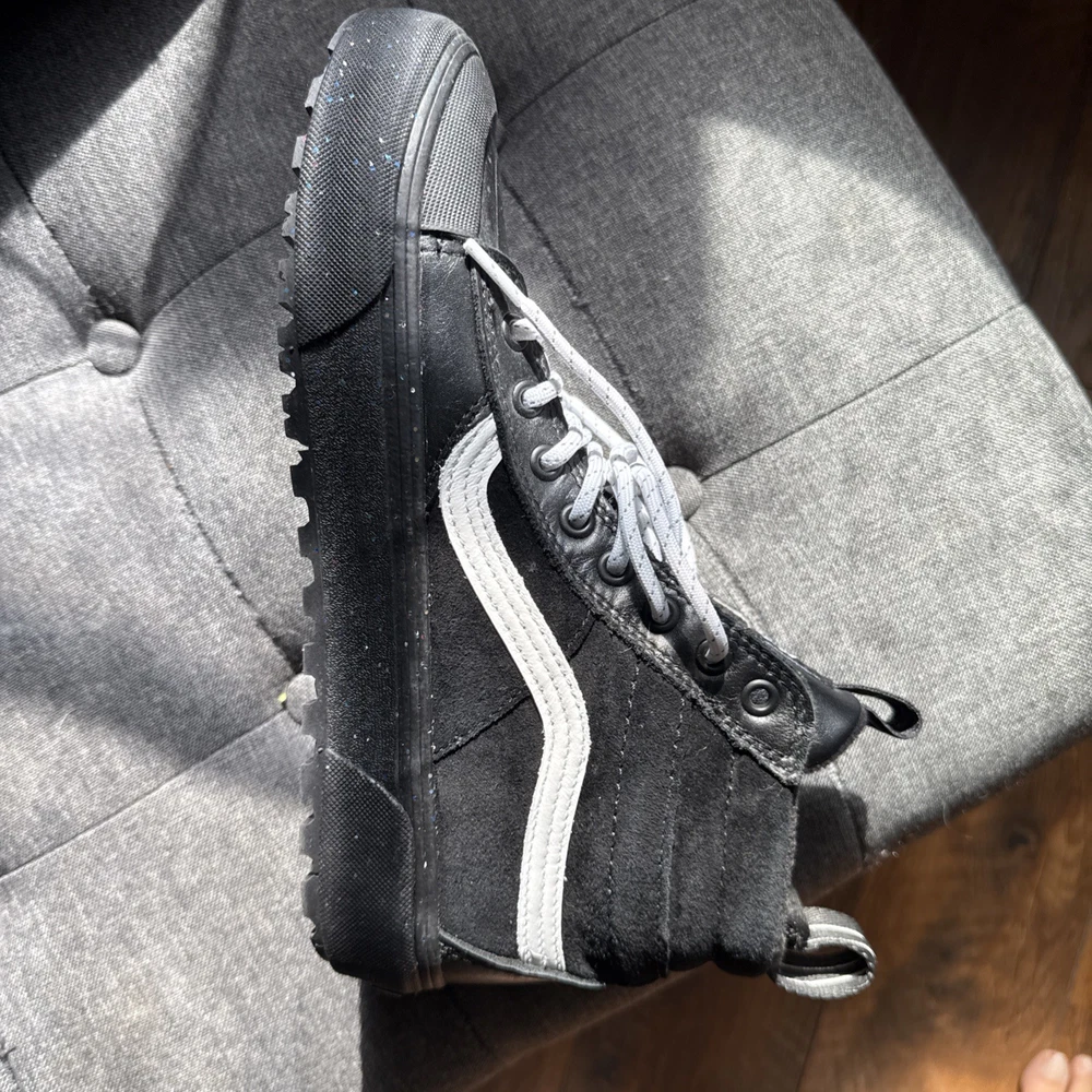 The VANS Sk8-Hi MTE-2 in Black offers hydroguard waterproof protection, making it a stylish and functional choice for rainy days. This high-top sneaker features a classic black color with the iconic VANS logo, providing a comfortable and durable option for both men and women. With a US shoe size of 9.5 for women, this shoe combines style and practicality in a sleek design that is perfect for everyday wear or athletic activities. Ultra Cush Footbed. Glitter.