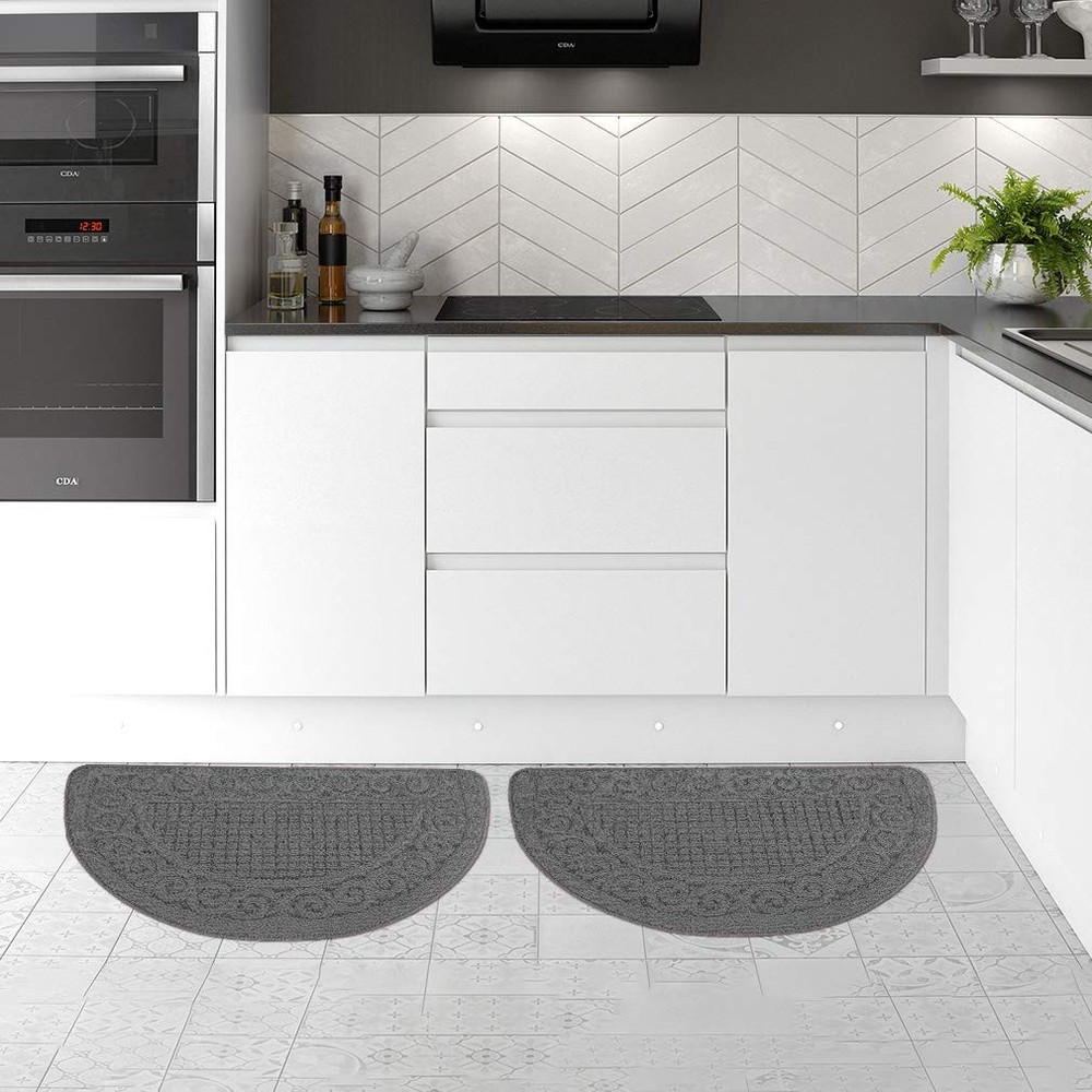Items: Kitchen rugs/Doormats Size:31''x19'' Style:Half-Round Kitchen Rug/Doormat design has modern sensibilities, add fashion esthetic feeling to any space, ideal to place in your kitchen/bathroom/floor/doorway/kid's room/indoor/outdoor/foyer/bedroom/balcony/porch/dining room, let your home looks more fashion and cleaner. Multifunction -Used for indoor outdoor, kitchen, bathroom, floor, doorway, kid's room, foyer, bedroom, balcony, porch, dining room, laundry, living room, patio, office, industrial, commercial deal, or any other high traffic area. Non-Slip & Moderate Thickness -Anti-Skid natural latex backing, leakproof, waterproof and stay in place on dry floor, won't slip or scuff floors. -Moderate thickness design ensures doors won't get stuck. Wear Resistant & Easily Remove Sludge -Kitchen Rugs design is fashion and modernized, which is durable, wear resistance, moderate thickness, excellent water absorption and easily remove sludge. -3 Steps to clean your shoes ①soil & sand in shoes ②tap lightly in the doormat ③wiped clean Super Water Absorption -Excellent water absorption of the kitchen rugs/doormat can keep your home dry and clean, make your home sweet and warm. Machine Washable & Easily Care -Kitchen rugs are easy to clean and care, you can clean it by 3 methods as follows: ①Put the mat face down to tap it for a few time ②Using the brush to clean and put it in the sun ③Using the wash machine to clean and dry it. Warranty Policy 12-month warranty and friendly customer service. What You Will Get: 2 Pack 31''x19'' Kitchen Carpets A great purchasing experience 12-month warranty and friendly customer service. 🏡 Extra Durable Reliable: kitchen rug is made of 100% polypropylene which is non-slip and durable, will not break down or compress over time. This kitchen mat is lightweight, durable, breathable, pilling resistance and no static. 🏡 Latex Backing Design: The backside of the kitchen rugs is made of natural latex, which is much more breathable and absorbent than PVC and TPR. Super water absorbent keeps your kitchen and kitchen mats dry and clean, while increases breathable and the friction between the kitchen carpet and floor, which can keep your family's and kids' safe without any slip. 🏡 Wear Resistance & Easily Remove Sludge: Half round kitchen rugs design is fashion and modernized, which is durable, wear resistance, moderate thickness, excellent water absorption, easily remove sludge. Kitchen cushion mat are not easy to get stain on the surface, which can keep your floor clean and makes your home look more beautiful and warm. 🏡 Machine Washable & Easily Care: This doormat is easy to clean and care, you can just use vacuum to clean it on daily, which means you only need to put the mat face down to tap it for a few time or using the brush to clean. If it has been used for a long time, you can also use wash machine to clean the door rugs. 🏡 What You Will Get: 2 Pack 31x19 inch kitchen rugs, A great purchasing experience, 12-month warranty and friendly customer service. Please feel free to contact us for anything on your mind and we will get your satisfaction.
