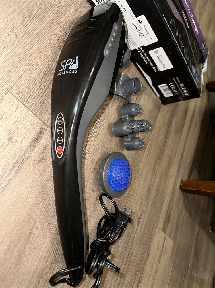 VARA Deluxe Handheld Deep Tissue Massager for Muscles, See Description Open box this has 4 interchangeable heads ( box should contain 5 heads ) Relieves sore and stiff muscles Long handle to target hard to reach areas Quiet motor Massages up to 3400 pulses a minute Cold treatment head to relax sore muscles