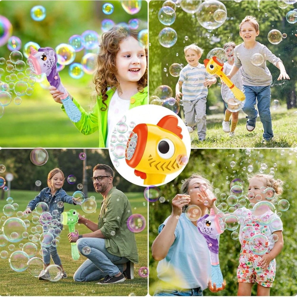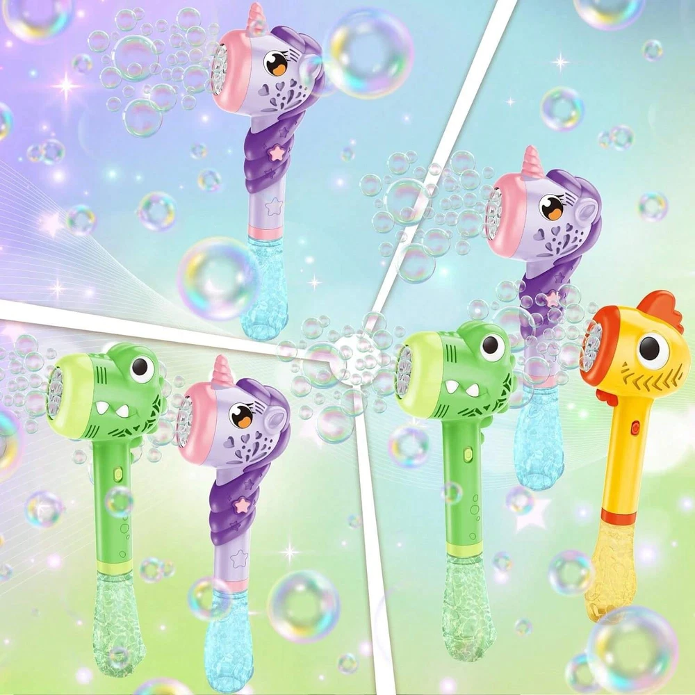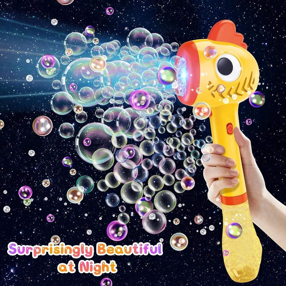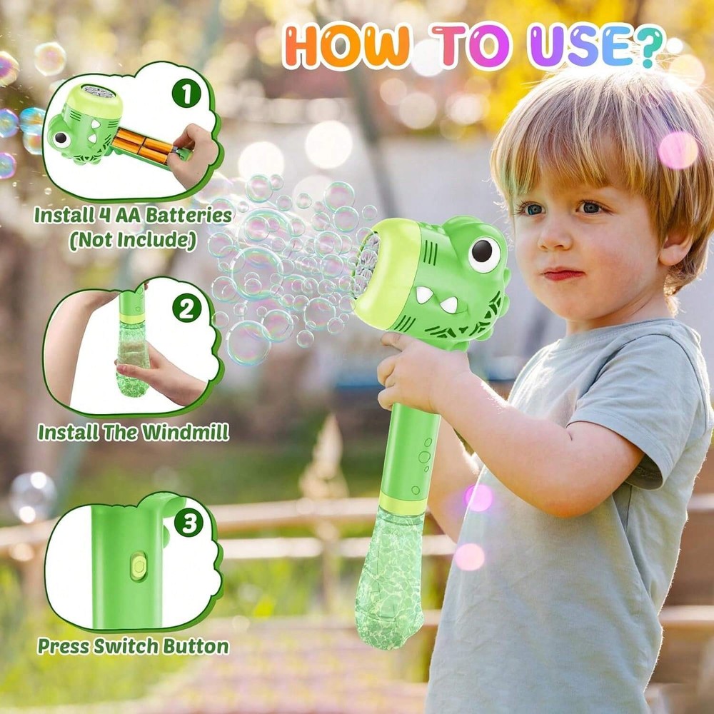 UPGRADED AUTOMATIC BUBBLE WAND - VATOS bubble machine gun set includes a green crocodile bubble wand, a purple bubble maker, a chicken bubble machine, 3 bottles of 180ml refill liquid. Blows over 7000 colorful bubbles per minute. It also comes with lights and music to create a romantic and magical atmosphere with colorful bubbles that will bring fun to children anytime of the day. 3PCS BUBBLE MAKER TOY SET: In contrast to the 2-pack, the 3-pack is designed even more for families with multiple children. Different shapes correspond to different children's personalities, cute, cool, playful, kids can pick their favorite shapes from inside. SAFE & DURABLE & HIGH QUALITY MATERIAL: The crocodile bubble machine is made of high quality ABS material, portable and portable design, and smooth surface, toddlers can enjoy the fun of the bubble gun without worrying about injuries. Bubble machine maker are great outdoor play toys, encouraging kids to put down their electronics and play outside for fresh air and exercise. EASY TO USE: The bubble maker is easy to operate, just screw the bubble solution bottle heel onto the bubble maker and install 4PCS AA batteries for the bubble gun. Then, kids just need to turn on the switch and wait for a few seconds to enjoy the colorful bubble world. BEST OUTDOOR PLAY GIFT: Cute animal shaped appearance, outdoor toys for year-round play-VATOS colorful bubble machine. All occasions that need romantic atmosphere, the bubble machine can bring you a surprise, theme parties, graduation, Christmas, birthdays, weddings, garden yard play and other occasions, it is the best choice for gifts in all seasons. Reminder: 1.Bubble water is not safe for children under 3 years old, so please make sure to put it in a safe place to avoid young children contact; 2.When installing AA batteries, because the battery specification is not the same, when you install batteries for purple bubble machine, it may not be so easy to install successfully, please feel free to contact us to help!