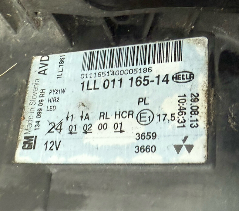 VAUXHALL INSIGNIA RIGHT O/S HEADLIGHT HALOGEN MK1 FACELIFT 2013-2017 1ll01116514.