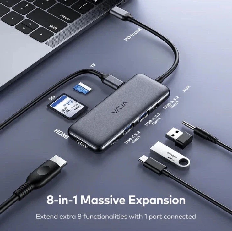 MPN:Does Not ApplyDimensions:12 x 49 x 14cm / 4.7 x 19.3 x 5.5inType:VAVA-UC020UPC:Does not applyCompatible Model:8-in-1, vava-uc020Color:GrayCable Length::18cm / 7.1inCountry of Origin:United StatesConnector A:USB, USB-CBrand:VAVACustom Bundle:Nogtin13:Does not apply
