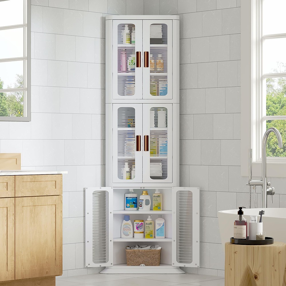 Maximize Space: VECELO corner kitchen cabinet organizer utilize overlooked corner spaces, perfect for kitchen, living room, bathroom and more Boundless Capacity: This corner kitchen cabinet is designed with spacious storage, maximizine vertical space. Each shelf features 2 adjustable shelves, allow to customize the height to fit items, keep everything organized Waterproof & Dustproof: This plastic storage cabinet with doors and shelves features adhesive doors with tough closing, making it waterproof. The corner pantry cabinet keeps dust out to ensuring stay clean Stable & Secure: The 90° design allows the tall corner cabinet to fit snugly in corners, with a sturdy base and anti-tip device for maximum safety Easy to Clean: This kitchen corner cabinet features a smooth, waterproof and dustproof surface, make cleaning effortless. Simply wipe with a damp cloth to easily remove stains