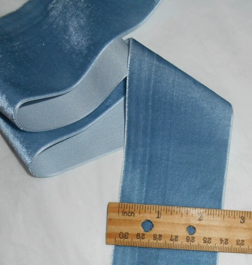 VELVET RIBBON. This is a beautiful medium BLUE. 2.5" wide and 5 Yards long on the spool. It has a vintage look to it. Quality woven ribbon. Probably a poly or rayon blend. Shown with a ruler for a confirmation on width. Combined shipping is automatic if you are buying more of the SAME color. Combined shipping is offered when you purchase or win multiple items. PLEASE REQUEST A COMBINED Invoice BEFORE you pay. If you are using a small browser (cell phone, notebook) There may be NO OPTION to request a total for a COMBINED invoice. You may want to use a PC or LAPTOP in general for your EBAY buying. Otherwise you miss out on all sorts of details and options. If you need a combined invoice and do not have the option? I refund the shipping overage. The item has been photographed well. The pictures support both the description & the condition of the item. You have the option to use the magnification feature on the images also. As shown. 7. Purchase Conditions When buying an item on eBay Services, you agree to the Rules and policies for buyers and that: You are responsible for reading the full item listing before making a bid or commitment to buy, You enter into a legally binding contract to purchase an item when you commit to buy an item, your offer for an item is accepted, or if you have the winning bid (or your bid is otherwise accepted), Combined shipping is offered when you purchase or win multiple items. PLEASE REQUEST A COMBINED Invoice BEFORE you pay. If you are using a small browser (cell phone, notebook) There may be NO OPTION to request a total for a COMBINED invoice. You may want to use a PC or LAPTOP in general for your EBAY buying. Otherwise you miss out on all sorts of details and options. If you need a combined invoice and do not have the option? I refund the shipping overage. Buying from sellers using eBay International Shipping If your seller is shipping your item through eBay International Shipping, the eBay International Shipping logo will be displayed in the listing and at checkout. You'll pay for delivery charges at checkout and you'll pay for any customs charges, import fees and taxes either at checkout or when your item arrives. When you buy an item from a seller using eBay International Shipping, you can benefit from lower international shipping costs negotiated by eBay. Keep in mind that you currently won't be able to combine shipping if you purchase multiple items from sellers in this program. Once you've completed checkout, the seller will send your item to our shipping hub, and from there it's shipped to you. Tracking is automatically added so you can track your item from the hub to your door.