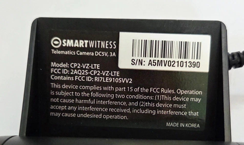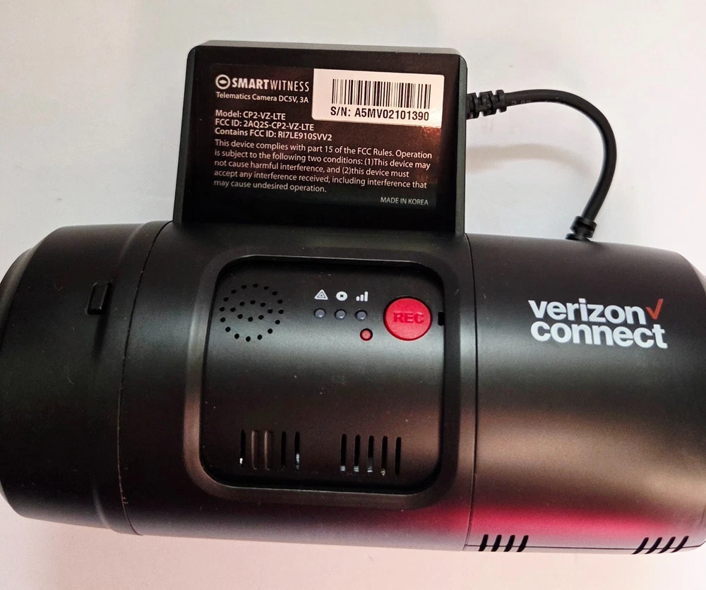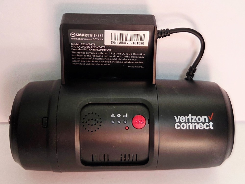 VERIZON SMART WITNESS MODEL CP2-VZ-LTE VIDEO DASH CAM + ACCESSORIES ** NEW ITEM IN ORIGINAL OPEN BOX ** MODEL CP2-VZ-LTE ** INCLUDES ACCESSORIES (* SEE PICTURE) ** 2-CHANNEL VIDEO TELEMATICS DASH CAMERA WITH BUILT-IN 4G/LTE CONNECTIVITY ** GPS/GLONASS, A G-SENSOR, GYROSCOPE, & SUPPORT FOR UP TO 128 GB OF SD CARD STORAGE ** RECORDS 1080p HD VIDEO WITH A 170 DEGREE WIDE-ANGEL LENS KEY FEATURES: Video Resolution: Full HD 1920x1080 (720p and VGA also supported) Frame Rate: Adjustable, up to 30 frames per second (FPS) Lens: 170° wide-angle lens for the forward-facing camera Storage: Up to 128GB on local SD card Connectivity: Built-in 4G/LTE modem Sensors: Integrated G-sensor and gyroscope for impact and driving behavior analysis GPS: Built-in GPS/Glonass for vehicle location tracking Audio: Microphone included Power: Connects directly to vehicle ignition power with delayed shutdown Inputs/Outputs: 2 alarm inputs, 1 alarm output Tamper Resistance: Tamper-resistant design with a secure cover for SD and SIM cards
