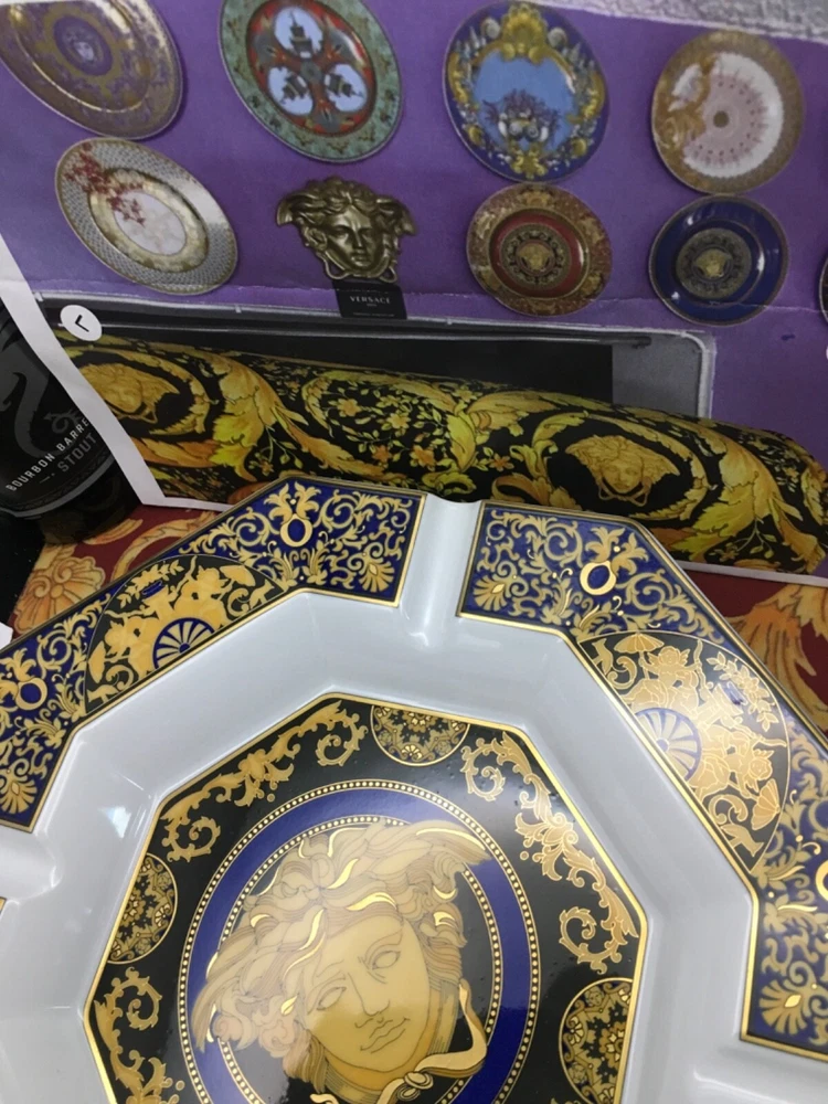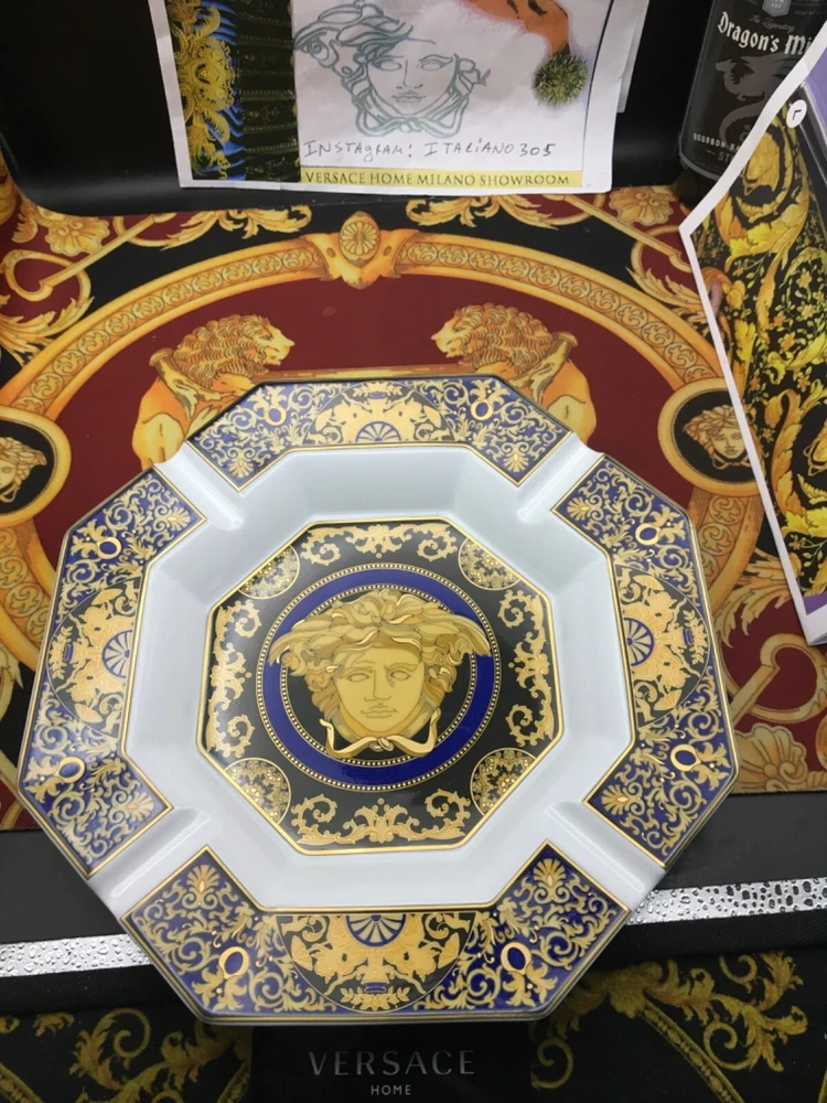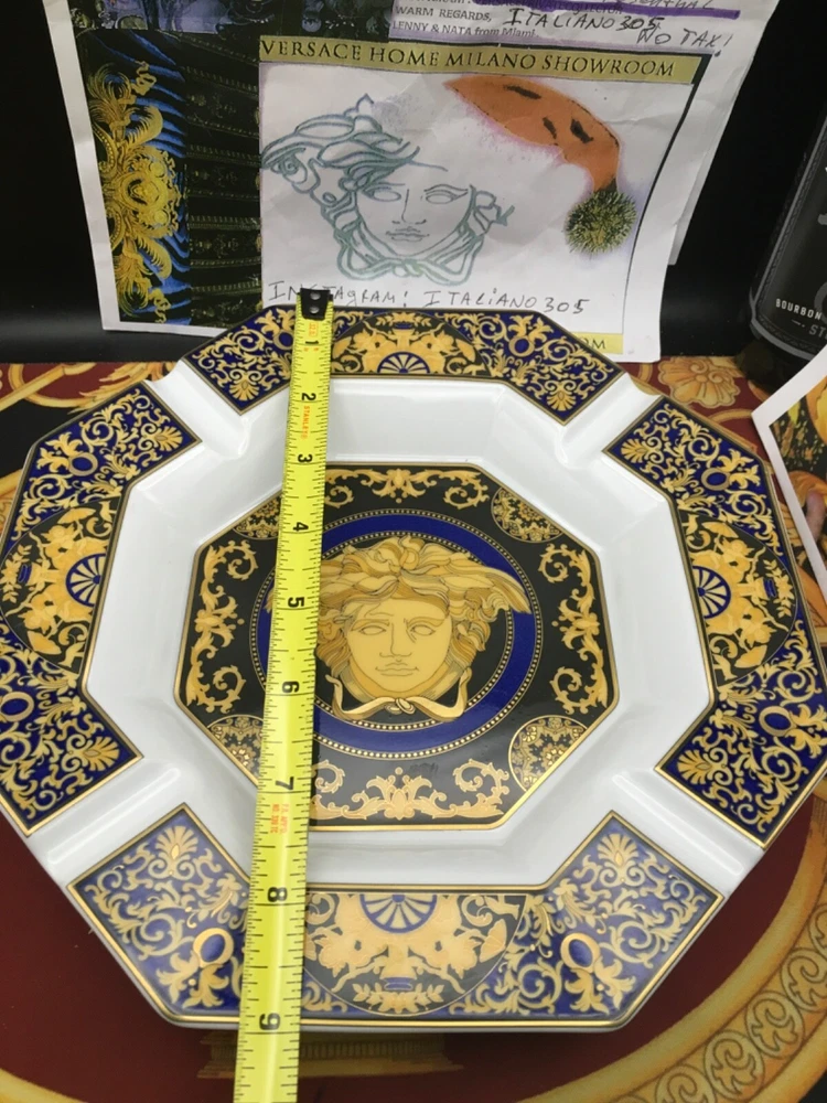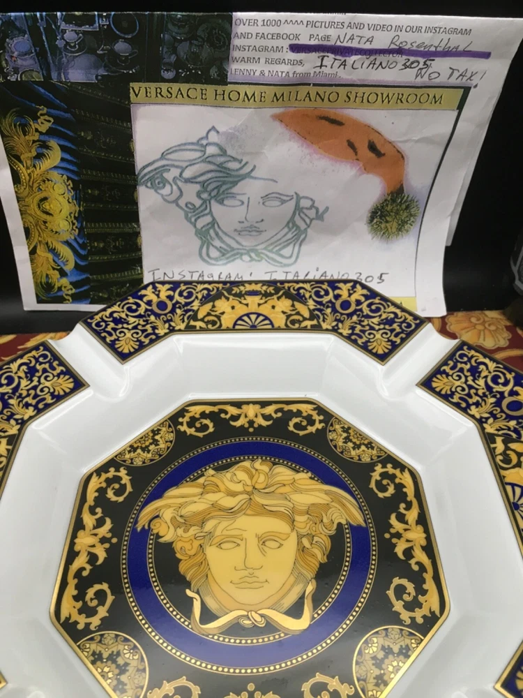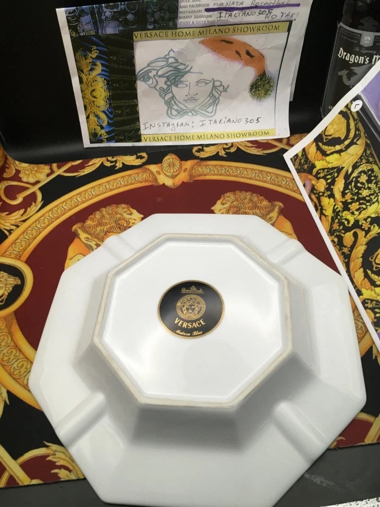 VERSACE ASHTRAY MEDUDA Blue FACE ON MIDDLE SIZE: 9" inch in Versace box original FEEL FREE TO CHECK ALL 500 VERSACE HOME GOODS . WE COLLECT AND SELL VERSACE ITEMS SINCE 1993 ... WE SHIP FROM USA