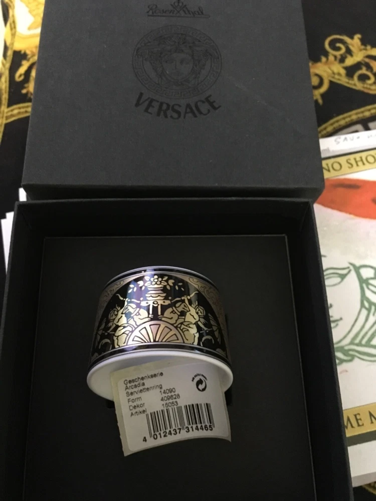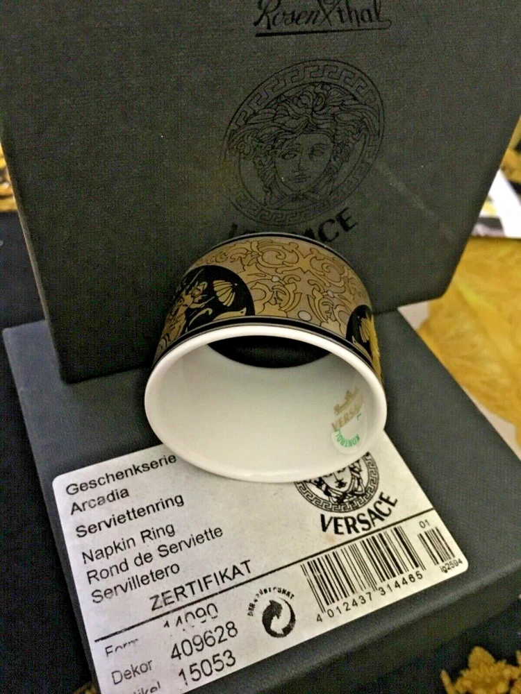 1 VERSACE NAPKIN RING HOLDER ARCADIA GOLD comes in Versace box Discontinued hard to find +++ INSTGRM VERSACEPRIVATECOLLECTOR : : SHIPPING WORLDWIDE BY GLOBAL Discount SHIPPING IF YOU HAVE ANY QUESTIONS PLEASE FEEL FREE TO ASK ANYTIME Check out my other items!