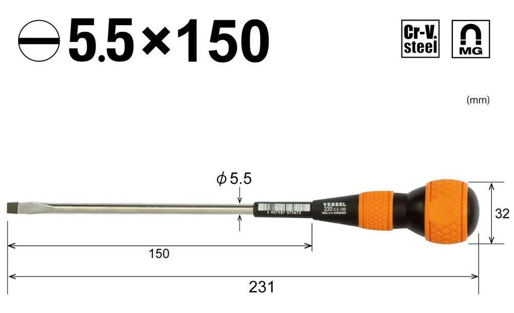 VESSEL 6×100 Ball Grip Driver 220 Torque Fastener Tool