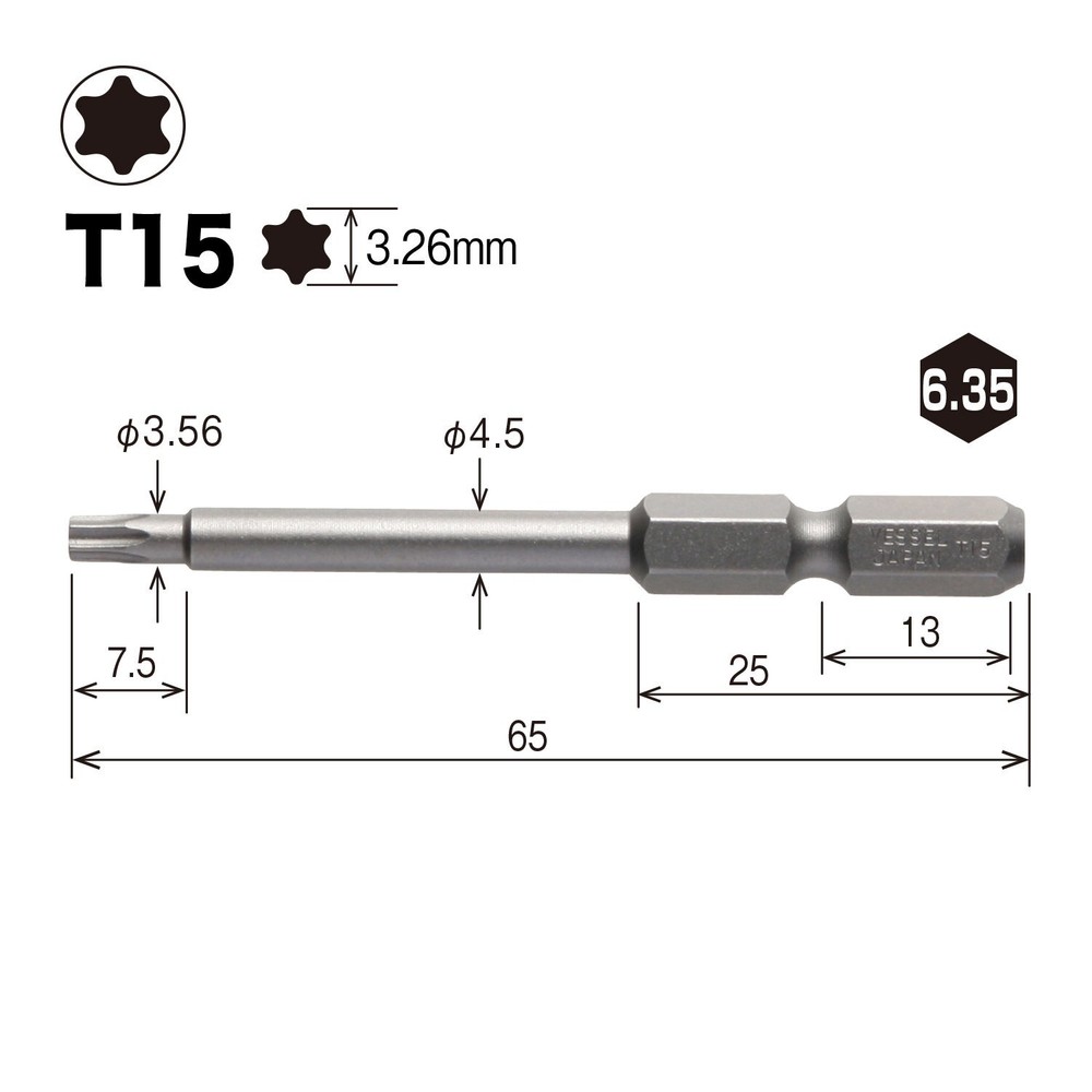 Brand: VESSEL Drive system: Torx Quantity: 1 Manufacturer: VESSEL About this product Blade tip: T15 Total length: 65mm Shank diameter: 6.35mm No magnet Quantity: 10 pieces RoHS 10 substance compliant Country of origin: Japan ☆PRODUCTS☆ Please check the Photo ☆PAYMENTS☆ We accept PayPal and all major Debit / Credit Cards. We can only ship your item after your payment clears. We ship within 10 days of payment. ☆CHECKOUT☆ Please check your address before paying because we can ONLY ship to addresses that are entered before placing the order. We cannot change an address after the order has already been placed. ☆SHIPPING☆ Packages:Box and Bubblerup Packages usually leave our warehouse within 5-7 days of payment. Weekend orders will ship on Monday or Tuesday. We provide valid Tracking Numbers for all orders. ~~For Expedited shipping~~ For Expedited, the item will arrive in about 2-6 days after shipping. ~~For economy shipping~~ Economy shipping to the US (with some exceptions) will take approximately 7-12 business days to arrive after shipping. Even if you select economy shipping, it may be changed to Expedited instead of Economy depending on the size of the product or the size of the package. If it is changed to Expedited, there will be no additional charge, so please rest assured. Only for shipments to Australia, items will be shipped by Japan Post's EMS instead of FedEx (arrival schedule may change slightly) ☆International Packages:☆ We ship to all US Territories, Europe and Asia and Middle East and Australia and Canada including Guam All our international packages ship under the Fedex and Japan Post. ☆CUSTOMER SERVICE☆ If you have any questions or issues, we are at your service. You can email us anytime through eBay messages. ☆RETURN INFORMATION☆ We offer a standard FREE 30 days refund or exchange policy. Item must be returned in original condition in order to receive a full refund. ☆Customs duty☆ Import duties, taxes, and charges are not included in the item price or shipping cost. These charges are the buyer's responsibility. Please check with your country's customs office to determine what these additional costs will be prior to bidding or buying. We will reply to your question or invoice within 3 days. We can't not reply gifts or unreasonable requests such as declared amount.