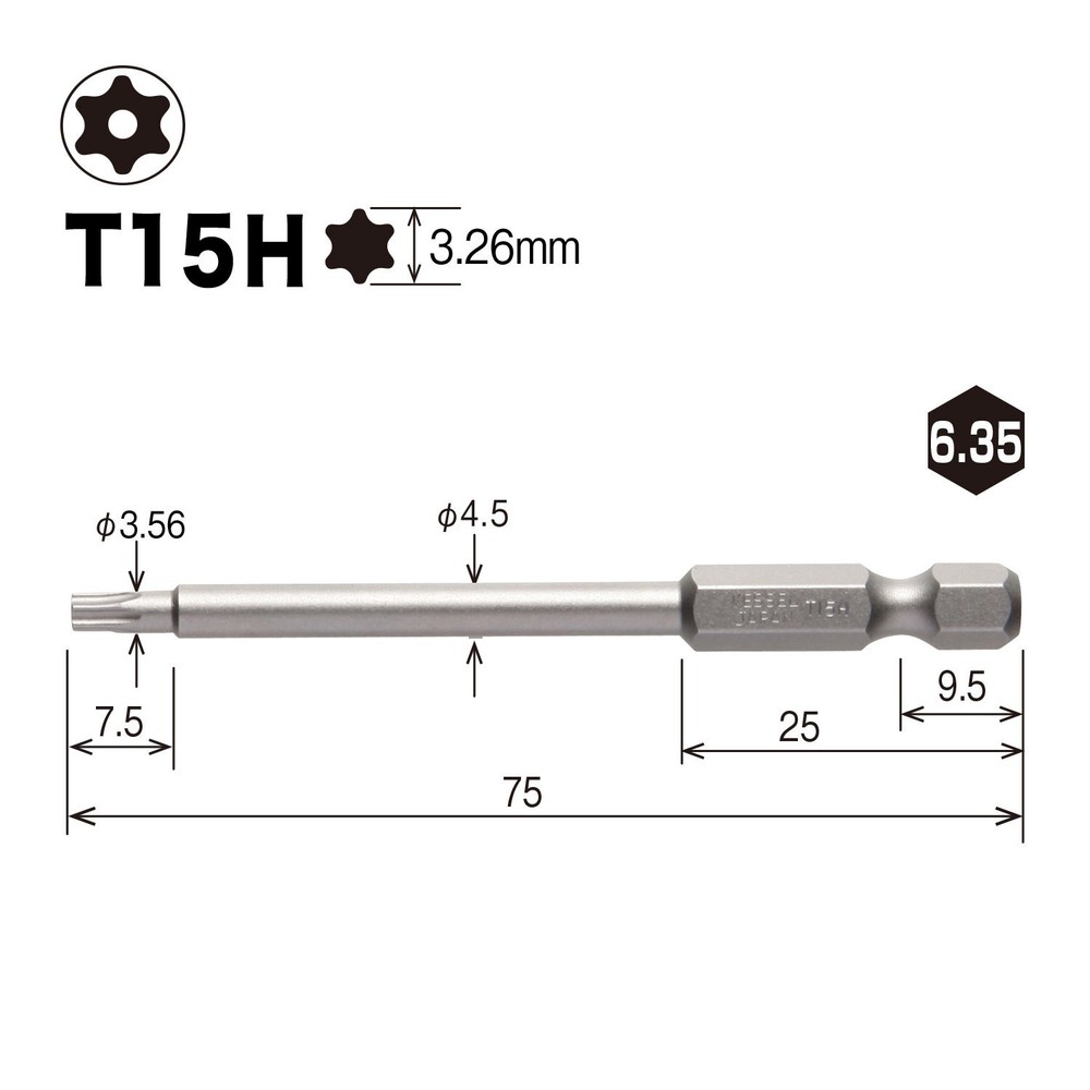 VESSEL Tamper-Proof T15H Torx Bit Set 75mm 10-Piece J ZP