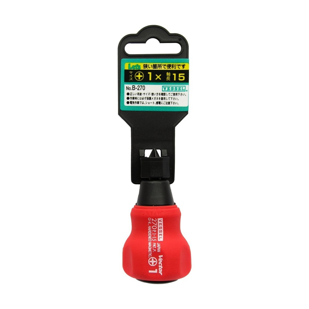 VESSEL Vector Stubby Screwdriver 6×15 B-270 with Precision Grip