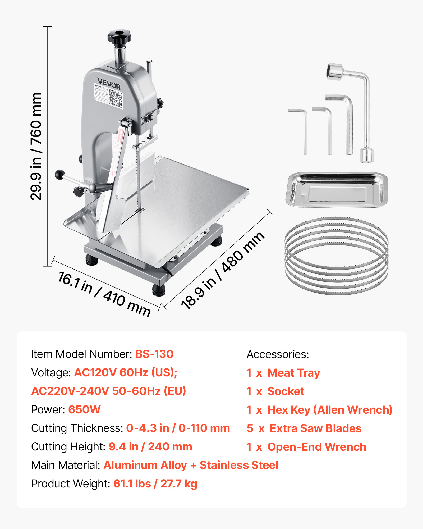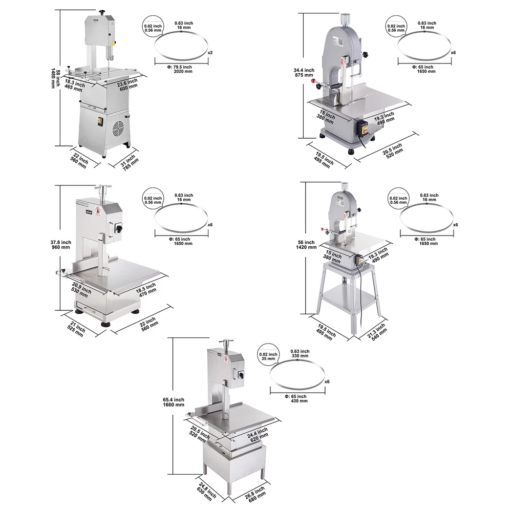 Document Product Description Free Your Hands and Facilitate Your Life Our bone saw machine is powered by a 850/1100/1500/2200W pure copper motor to deliver unmatched strength. Combined with sharp stainless steel blades and precision gears. With a gentle push, you can slice through the tough bones and frozen meat. Our stainless steel worktable features precise scale lines, you can adjust the desired thickness (0.16 to 8.7 inches). No matter if you're dealing with large lamb leg bones or beef leg bones, our machine can handle them all. From delicate ham slices to bone chunks, it tackles every cut flawlessly. Built to endure, our electric bone saw is crafted with durable aluminum alloy and reinforced stainless steel. Equipped with sharp blades and a waterproof cover, it slices through various bones and frozen meat. Its wear-resistant and scratch-resistant design guarantees a long lifespan. Our meat cutting saw comes with six razor-sharp saw blades. The adjustable blade tensioning device ensures optimal performance without risking breakage. Plus, the waste collection box makes cleanup a breeze. Effortlessly maintain cleanliness and organization. Unlock a world of culinary possibilities! Our bone saw machine is perfect for cutting ribs, venison, beef bones, lamb bones, and even frozen fish. It's a must-have for restaurants, meat franchise stores, supermarkets, meat processing plants, seafood processing plants, and slaughterhouses. Here we will provide you with six types of bone saw machine for your option: 850W meat grinder, 1100W tabletop, 1500W tabletop, 2200W tabletop, 1500W vertical, 2200W vertical. Features & Details Stable & Efficient: The 850W / 1100W / 1500W / 2200W pure copper motor provides impressive power, and the sharp stainless steel saw blade, along with precision gears, ensures a cutting efficiency of up to 265 / 441 / 661.4 / 2205 / 3307 lbs/H. Our electric bone cutting machine cuts smoothly without jamming, allowing you to easily cut various hard bones and frozen meat with a gentle push. Precise & Even: The stainless steel worktable provides a cutting surface with precise scale lines. You can adjust the desired thickness more accurately as needed. The commercial bone cutting machine can accommodate large pieces of lamb leg bones and beef leg bones. The cutting thickness can be adjusted from 0.16 to 9.1 / 0.16 to 7.9 / 0 to 7.1 / 0.16 to 8.7 inches, allowing for excellent results with thin ham slices or thick chunks of bone. Sturdy & Durable: Crafted with cast iron and reinforced stainless steel, this bone saw machine is built to last. It comes with two sharp saw blades that can easily cut through various bones and frozen meat. Its wear-resistant and scratch-resistant design ensures long-lasting durability without rusting, providing you with extended usage. Safe Operation: Designed with safety in mind, this machine features a one-button switch for convenient operation. The stainless steel pusher plate and pusher rod keep your hands safely away from the sharp saw blade during the cutting process. Enjoy peace of mind while achieving excellent cutting results. Wide Applications: Our commercial electric meat bandsaw is ideal for cutting ribs, venison, beef bones, lamb bones, frozen fish, and more. Suitable for restaurants, meat franchise stores, supermarkets, meat processing plants, seafood processing plants, slaughterhouses, etc. SHIPPING ABOUT US PAYMENT RETURNS CONTACT WARRANTY Welcome to our eBay store. As a leading and emerging company in manufacturer and exporting business, we are specialized in Business and Industrial Products, Sporting Goods, Pet Products, Home and Garden products for more than 10 years. We believe that it is our vision and mission to provide innovative products with best service and competitive price to satisfy you. Our goal is to make sure that you can find exactly what you are looking for and make it easy for you to place your orders. We accept PayPal payment,PayPal Credit,Credit card or debit card and so on. Payment should be completed within 4 (Four) days of auction closing. Or unpaid dispute will be filed for closing auction. We will leave a positive feedback immediately after payment is received. We appreciate a positive feedback as much as you do. If for some reason there is any issue with the purchase, please contact us prior to leaving feedback, we will be glad to work together and provide a satisfying solution. Please be aware that PO Box cannot receive items, please DO NOT fill in the PO Box address. DELIVERY DAYS: 3-7 BUSINESS DAYS 3 BUSINESS DAYS SHIPPING OUT SHIP FROM CA & TX & NJ & GA & NC &OR WAREHOUSE California Warehouse: City of Industry, CA Texas Warehouse : Houston, TX New Jersey Warehouse : Perth Amboy, NJ New York State Warehouse: Perth Amboy, NJ Georgia Warehouse: Austell,GA North Carolina Warehouse: Grove NC Oregon Warehouse: AIRPORT WAY Portland,OR All of our items are backed with a 30-day return policy. We ensure all our items are new and in excellent condition prior to shipping. In case you receive the item that is not to the standards above, please contact us via e-Bay messages. All returns must be in new original condition as received and should be shipped with delivery confirmation Please note that all returns must be pre-approved by us. Unauthorized returns will not be accepted. If you need to return, please check twice to confirm the item not work and contact our customer service representative, let us know the detailed problem and send us some pictures for confirmation. We ONLY accept returns with original package. Please make sure that item has NO man-made sabotage. Used items will not be accepted for return. Email Customer Support: 9:00am-2:00am PST Sunday-Friday All emails will be responded to within 12-24 hours This item comes with 12 months Warranty from the date of customers purchased it. Special circumstances will be listed clearly in the listing. If your item has been damaged in transit or become faulty in warran