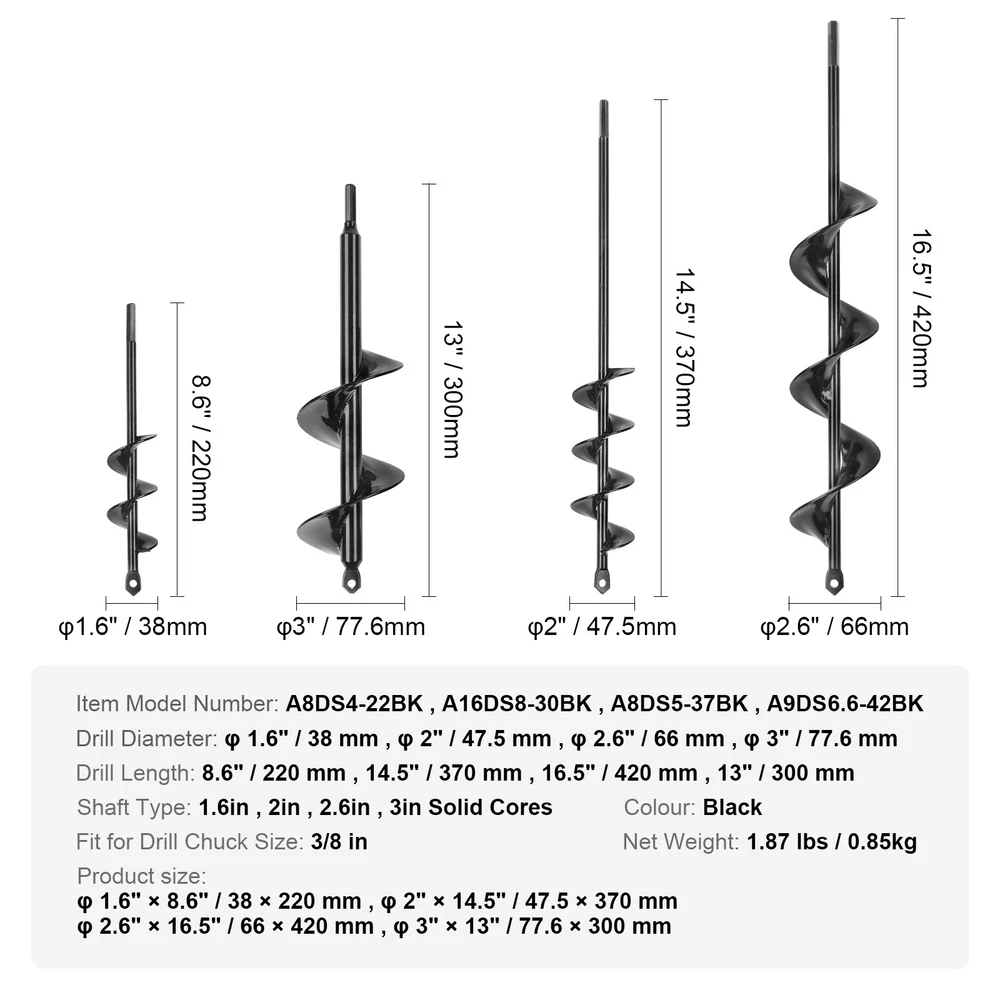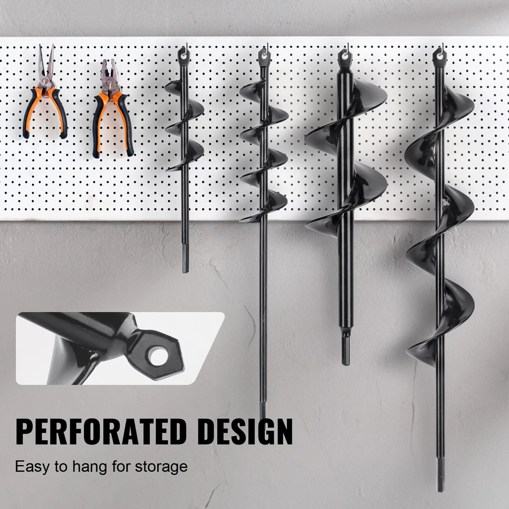 Document Product Description Auger Drill Bit with Solid Shaft, A Must-Have Tool for Your Garden Unlike the traditional garden auger drills, the head of the auger bit is reinforced with a specially processed and the welding process between the blades and the main shaft has been improved. More tough and strong! Made of PCM steel, this auger drill bit for planting is built to last and is not easy to break. Coated with black paint to prevent rust, ensuring a long lifespan. Our garden auger drill bit features simple installation. Just insert it in the hex drill driver, and secure it in place. Rotate smoothly without vibration for quick hole drilling and planting. There are four pcs drill auger bits of 1.6" x 8.6", 2" x 14.5", 2.6" x 16.5", 3" x 13" are available. The pointed triangle bit of the auger drill bit has a small hole on it for easily hanging storage when not in use. Our auger bit for the ground is suitable for planting bulbs, potted plants, vegetables, flowers, bare-root trees, mixing seeds, soil, and fertilizer. Or it can even be used for fence and tent installation. Be your garden helper! Features & Details Solid Auger Drill Bits: Our auger drill bits for planting are reinforced with special processing, improving the welding process between the blades and the main shaft, allowing for deeper drilling. It greatly eliminates the vulnerability of traditional garden auger drills. 4 types of various sizes: 1.6 x 8.6 in, 2 x 14.5 in, 2.6 x 16.5 in, 3 x 13 in are provided for different usages. Build to Last: Made of cold-rolled steel, our garden auger drill bits are sturdy, durable, and less prone to breakage. Coated with black paint to prevent rust, ensuring a long service life. For 3/8'' Hex Drill Driver: Enjoy the easy installation! Just insert the auger drill bit into the hex drill driver, tighten it, and rotate it to remove the soil. Repeat drilling until the desired planting depth is achieved. Triangle Drill Bit Head with Hole: Keep the drill auger for planting clean after use to prevent soil and debris from clinging to it. The triangle drill bit features a small hole for easy hanging on toolboxes or tool racks. Versatile Usage: These augers for planting are perfect for planting small crops, vegetables, flowers, transplanting seedlings, mixing seeds, soil, and fertilizer. They can even be used for fence and tent installation. A handy tool for your everyday needs. SHIPPING ABOUT US PAYMENT RETURNS CONTACT WARRANTY Welcome to our eBay store. As a leading and emerging company in manufacturer and exporting business, we are specialized in Business and Industrial Products, Sporting Goods, Pet Products, Home and Garden products for more than 10 years. We believe that it is our vision and mission to provide innovative products with best service and competitive price to satisfy you. Our goal is to make sure that you can find exactly what you are looking for and make it easy for you to place your orders. We accept PayPal payment,PayPal Credit,Credit card or debit card and so on. Payment should be completed within 4 (Four) days of auction closing. Or unpaid dispute will be filed for closing auction. We will leave a positive feedback immediately after payment is received. We appreciate a positive feedback as much as you do. If for some reason there is any issue with the purchase, please contact us prior to leaving feedback, we will be glad to work together and provide a satisfying solution. Please be aware that PO Box cannot receive items, please DO NOT fill in the PO Box address. DELIVERY DAYS: 3-7 BUSINESS DAYS 3 BUSINESS DAYS SHIPPING OUT SHIP FROM CA & TX & NJ & GA & NC &OR WAREHOUSE California Warehouse: City of Industry, CA Texas Warehouse : Houston, TX New Jersey Warehouse : Perth Amboy, NJ New York State Warehouse: Perth Amboy, NJ Georgia Warehouse: Austell,GA North Carolina Warehouse: Grove NC Oregon Warehouse: AIRPORT WAY Portland,OR All of our items are backed with a 30-day return policy. We ensure all our items are new and in excellent condition prior to shipping. In case you receive the item that is not to the standards above, please contact us via e-Bay messages. All returns must be in new original condition as received and should be shipped with delivery confirmation Please note that all returns must be pre-approved by us. Unauthorized returns will not be accepted. If you need to return, please check twice to confirm the item not work and contact our customer service representative, let us know the detailed problem and send us some pictures for confirmation. We ONLY accept returns with original package. Please make sure that item has NO man-made sabotage. Used items will not be accepted for return. Email Customer Support: 9:00am-2:00am PST Sunday-Friday All emails will be responded to within 12-24 hours This item comes with 12 months Warranty from the date of customers purchased it. Special circumstances will be listed clearly in the listing. If your item has been damaged in transit or become faulty in warranty period, please email us with pictures or video to show the problem. Please do check everything carefully after you received the parcel, any the damage except DOA (Dead-On-Arrival) would not be covered if it's your fault. Replacement products are provided with the same warranty as the returned products. VEVOR is a leading brand that specializes in equipment and tools. Along with thousands of motivated employees, VEVOR is dedicated to providing our customers with tough equipment & tools at incredibly low prices. Today, VEVOR's products are sold in more than 200 countries and regions with 10 million plus members worldwide. Auger Drill Bit with Solid Shaft, A Must-Have Tool for Your Garden Unlike the traditional garden auger drills, the head of the auger bit is reinforced with a specially processed and the welding process between the blades and the main shaft has been improved. More tough and strong! Made of PCM steel, this auger drill bit for planting is built to last and is 