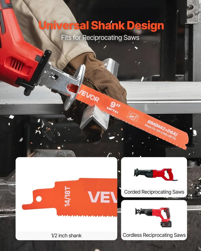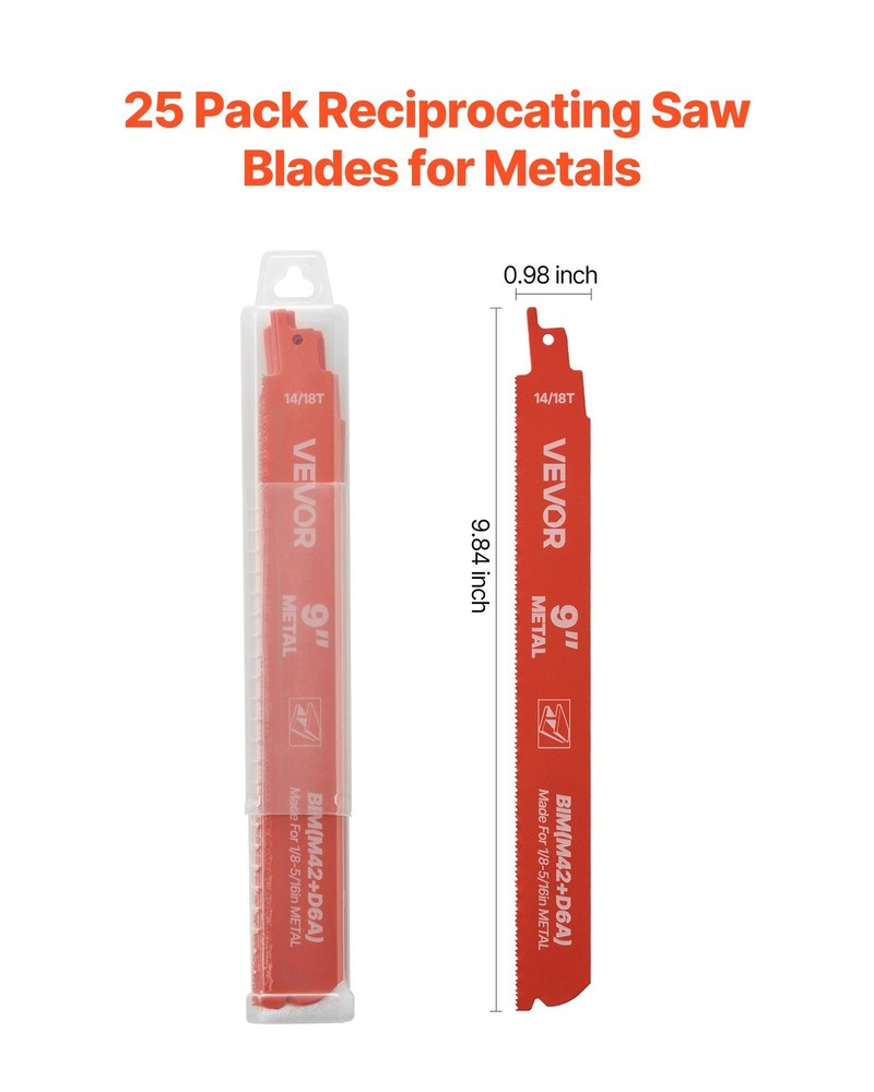 VEVOR Reciprocating Saw Blades,25 Pack,14/18 TPI Bi-Metal Reciprocating Saw Blad