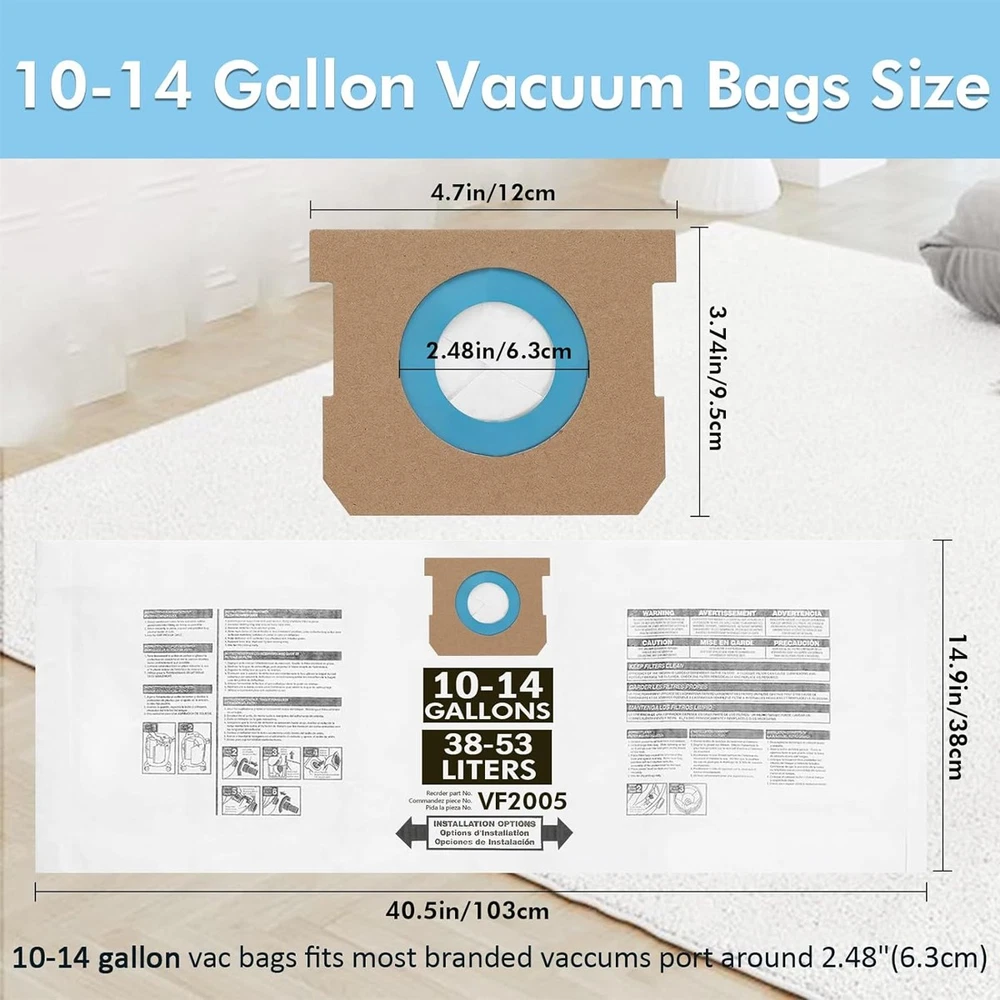 $ 6.81VF2005 Bags Compatible with Shop Vac Bags 10-14 Gallon, Type I 90672 9067200