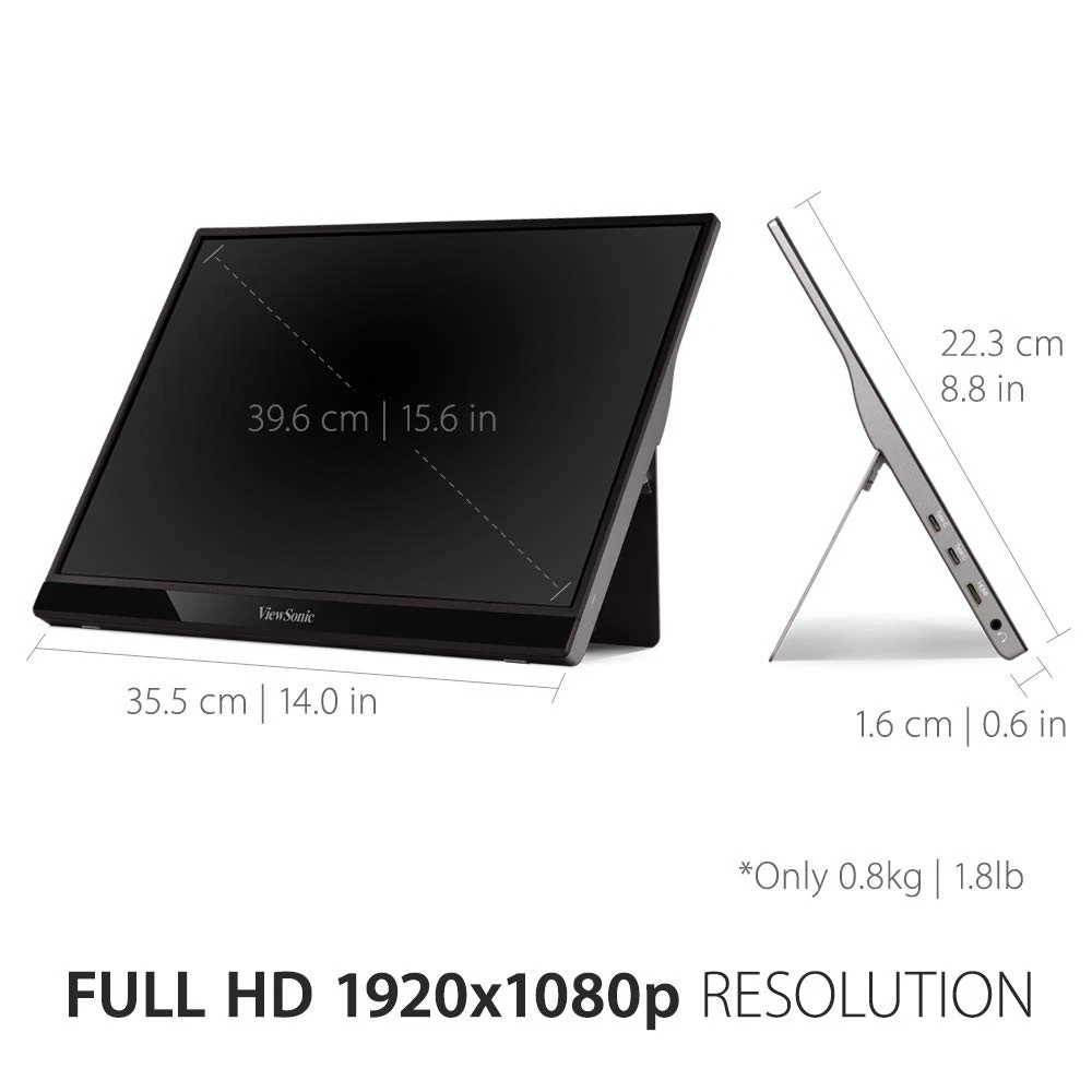 The VG1655 is a portable 15.6” monitor designed for productivity on the go. Built for business travelers, remote workers, and digital nomads, the VG1655 can serve as a complementary screen to a laptop or tablet for boosted productivity. Enjoy endless entertainment and gaming on-the-go by connecting the VG1655 to your favorite console via HDMI or USB-C. With an anti-glare screen and Full HD 1080p resolution, this monitor delivers a crystal-clear viewing experience so users can see more and do more for a more efficient workflow. A USB Type-C port enables quick and easy transmission of video, and audio. A second USB Type-C port also delivers up to 60W of two-way power: a connected laptop can power the VG1655, OR the VG1655 can power a connected laptop via a USB-C power bank or AC adapter and outlet. Measuring less than an inch thick and weighing under two pounds, the ultra-slim VG1655 perfectly fits into any bag, briefcase, or backpack so you can work wherever life takes you. ULTRA-PORTABLE MONITOR: 15.6 Inch Full HD (1920x1080p) IPS portable monitor with a premium aluminum design, and a 60Hz refresh rate SMALL AND COMPACT: With a weight of 1.8 lbs and a thickness of 0.6 in, this portable monitor is easy to take on the go for added screen real estate LESS CABLE CLUTTER: USB-C connectivity for fast data, audio and video transfer, and 60W charging over one cable, or passthrough power when using the included power adapter STAND COVER & SCREEN PROTECTOR: Comes with a detachable magnetic screen cover and a built-in stand for orientation in both portrait and landscape modes INDUSTRY-LEADING WARRANTY: 3-year coverage with access to our US-based customer service team