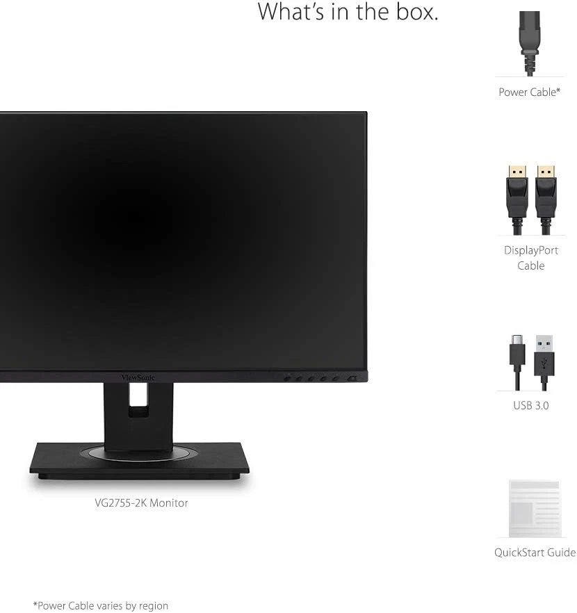 Store New Arrivals Add to Favorite View Feedback Contact VG2755-2K 24 Inch IPS 1440P Monitor with USB C, HDMI, Displayport and 40 Degree Tilt Ergonomics for Home and Office Description Display Resolution Maximum 2560 x 1440 Pixels Contrast Ratio 1000:1 Style 27-Inch 1440p Total Usb Ports 5 Warranty Type Limited Is Electric Yes Refresh Rate 60 Hz Power Consumption 60 Watts Has Color Screen Yes Number of Component Outputs 1 Aspect Ratio 16:9 Viewing Angle 178 Degrees Model Number VG2755-2K Hardware Connectivity DisplayPort, USB 3.1 Type C, HDMI, USB 3.0 Model Name VG2755-2K Response Time 5 Milliseconds Screen Size 27 Inches Specific Uses For Product Personal Screen Finish Matte Brightness 350 cd/m2 lm Total Number of HDMI Ports 1 Native Resolution QHD WIde 1440p Connectivity Technology USB, DisplayPort, HDMI Screen Surface Description Matte Special Features Anti Glare Resolution QHD Wide 1440p Mount Type VESA Compatible Wall Mount Item Weight 15.2 Pounds Display Type LCD Color Black Item Dimensions D x W x H 2"D x 24.1"W x 14.3"H Compatible Devices Desktop Cable Length 24.45 Inches Global Trade Identification Number 00766907992014 Display Technology LCD VERSATILE MONITOR: 27 Inch QHD (2560x1440p) IPS monitor with thin bezels and 60Hz refresh rate.Aspect ratio:16:9.Viewing Angle:178.0 degrees.Response time:5.0 milliseconds LESS CABLE CLUTTER: USB-C connectivity for fast data, audio and video transfer, and 60W charging over one cable ERGONOMIC STAND: Advanced ergonomics (40-degree tilt, swivel, rotate and height) for all-day comfort ENHANCED VIEWING COMFORT: Flicker-Free technology and Blue Light Filter for reduced eye fatigue VERSATILE STAND: Easy-to-install quick release stand with carrying handle and client mount 75 hertz Designed for the modern day office, The ViewSonic VG2755-2K monitor delivers an efficient end-to-end enterprise experience. Usb 3. 1 Type-C connectivity provides charging power, data, video, and audio over a single connector for convenience and reduced Cable clutter. Super clear IPS panel technology delivers wide-angle viewing and incredibly vivid colors, while 3-sided thin bezel design provides a seamless viewing experience for multi-monitor setups. For enhanced productivity, An advanced ergonomic design offers a wide range of customizable adjustments for maximum comfort including pivot, swivel, Height adjustment, and tilt. With the ability to tilt an impressive 40-degrees, this 27” monitor is ideal for users who prefer to work while standing up, as well as for those who like to use their screen for group discussions. Along with USB 3. 1 Type-C, additional connectivity options include HDMI, DisplayPort, and USB 3. 0. This monitor is also shipped in biodegradable packaging, along with an easy-to-install quick release stand that makes for simple out-of-the box setup. The quick release stand also includes an integrated client mount and cable management Features. ABOUT US We offer the best prices around on high quality products. Our E-store includes media such as books, movies, music and games while offering electronics, toys, sporting apparel, clothing, tools, general home, garden items and more. SHIPPING We are always working hard to ensure your package arrives as soon as possible. Please understand that some factors like weather, high postal traffic, and the performance of shipping companies are outside of our control. We offer free shipping to the lower 48 states and ship within 2 business days of payment, usually sooner. We do not accept P.O. Boxes. Please provide a physical address. For shipping outside of the continental USA, we only use eBay's Global Shipping Program.The item is shipped to KY and then sent to the rest of the world. International customers are responsible for all duties and taxes. Continue to check out in order to calculate costs for shipping the item to your country. Messages regarding eBay's Global Shipping Program MUST be directed at eBay EXCLUSIVELY. RETURNS We offer a 30-Day Return Policy on items which you are not completely satisfied with. You have the option for a full-refund or an exchange of the item. No returns are available on items shipped outside of the USA. PAYMENT We accept PayPal. CONTACT US This page content is yet to come Please ad us to your favorite seller and visit again later Thank You CUSTOMER SATISFACTION We try our very best to make sure every customer is completely satisfied. If there's a problem, message us! We're happy to help. WE ACCEPT Copyright © 2021 AutoDS. | All Rights Reserved