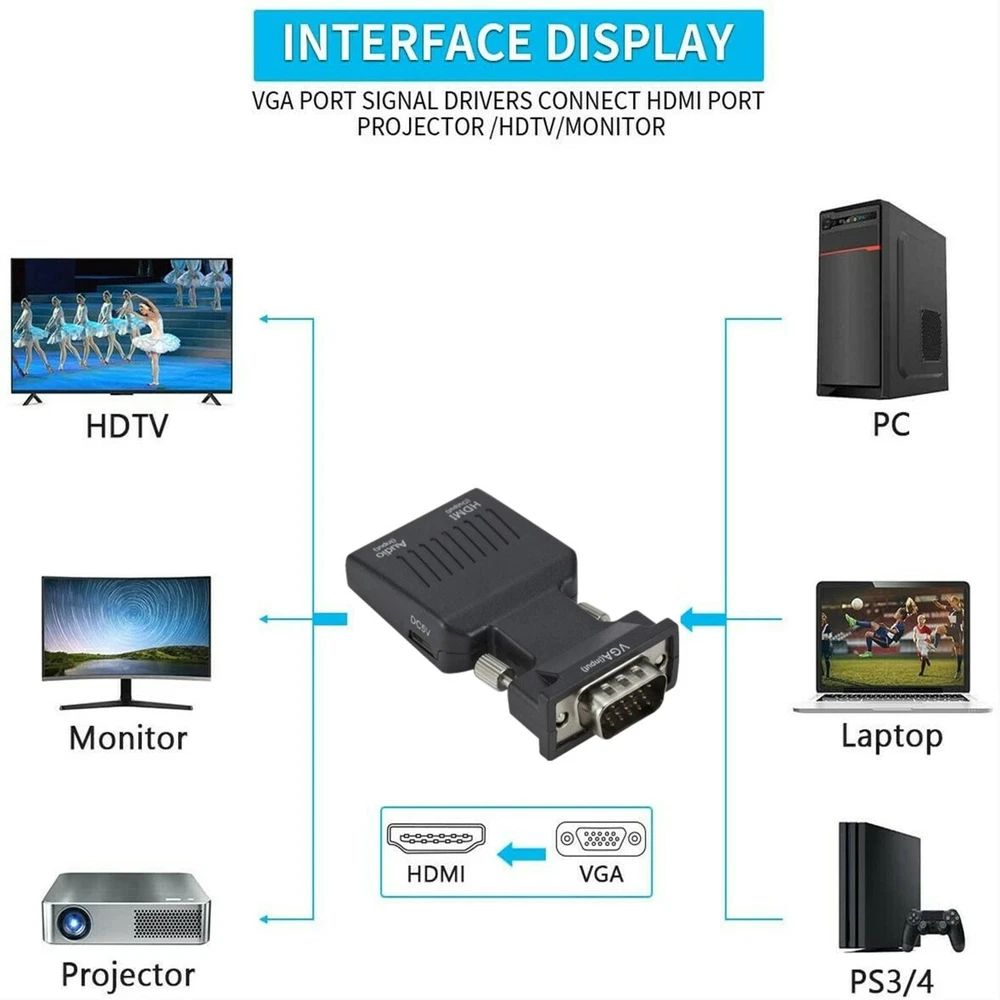 $ 6.53VGA to HDMI Adapter for PC Laptop to HDTV Monitor Projector Converter