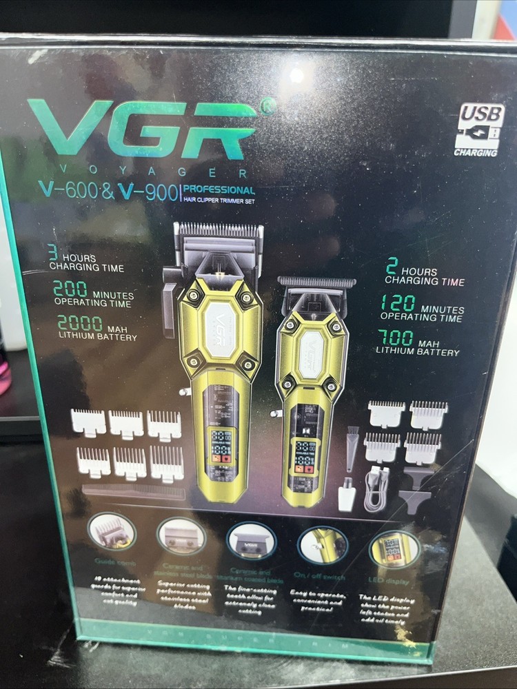 VGR V-600 & V-900 Professional Hair Clippers for Men, Cordless Barber Clippers and Trimmers Set, Mens Hair Cutting Kit with 10 Guide Combs, USB Rechargeable Haircut Machine for Family, LED Display, Gold