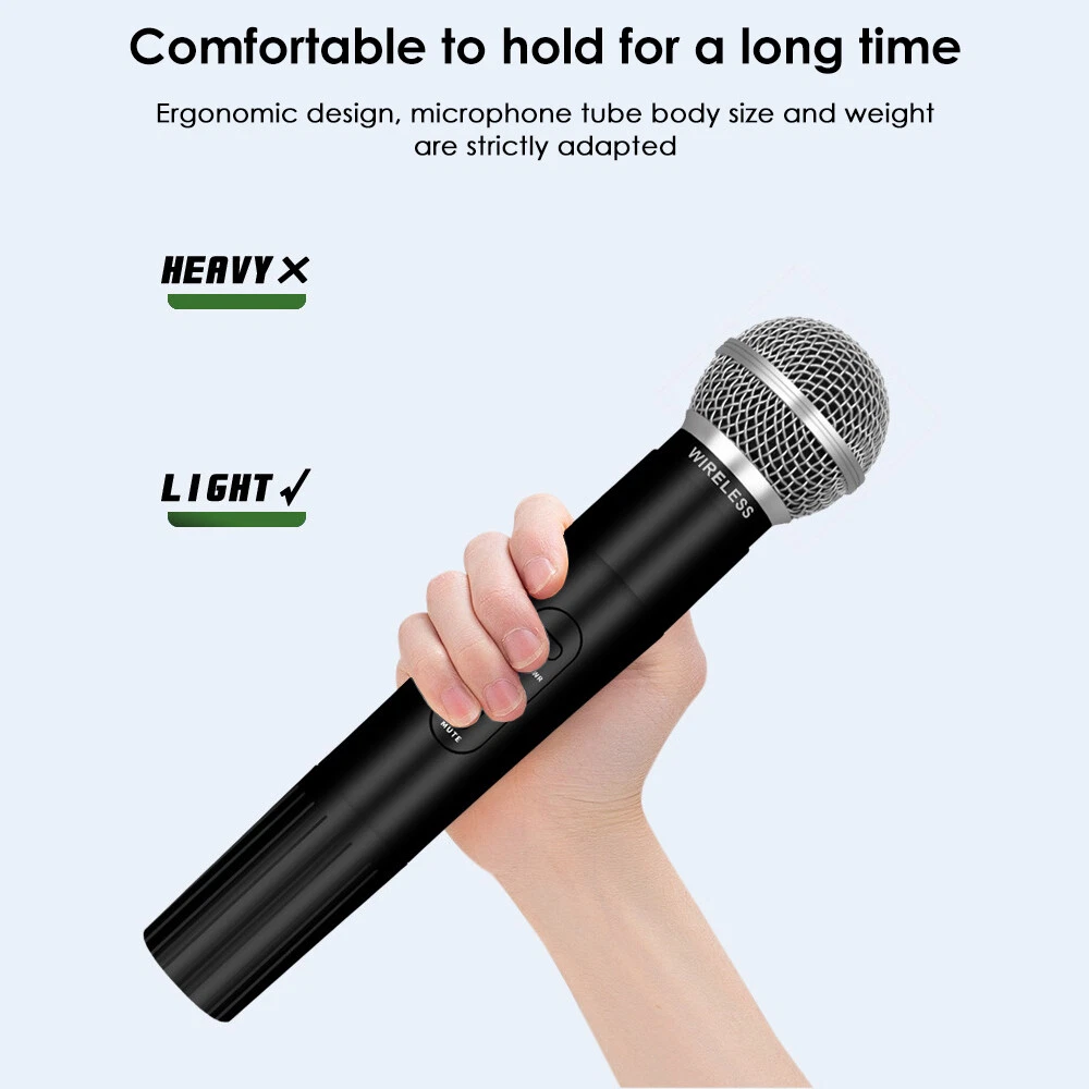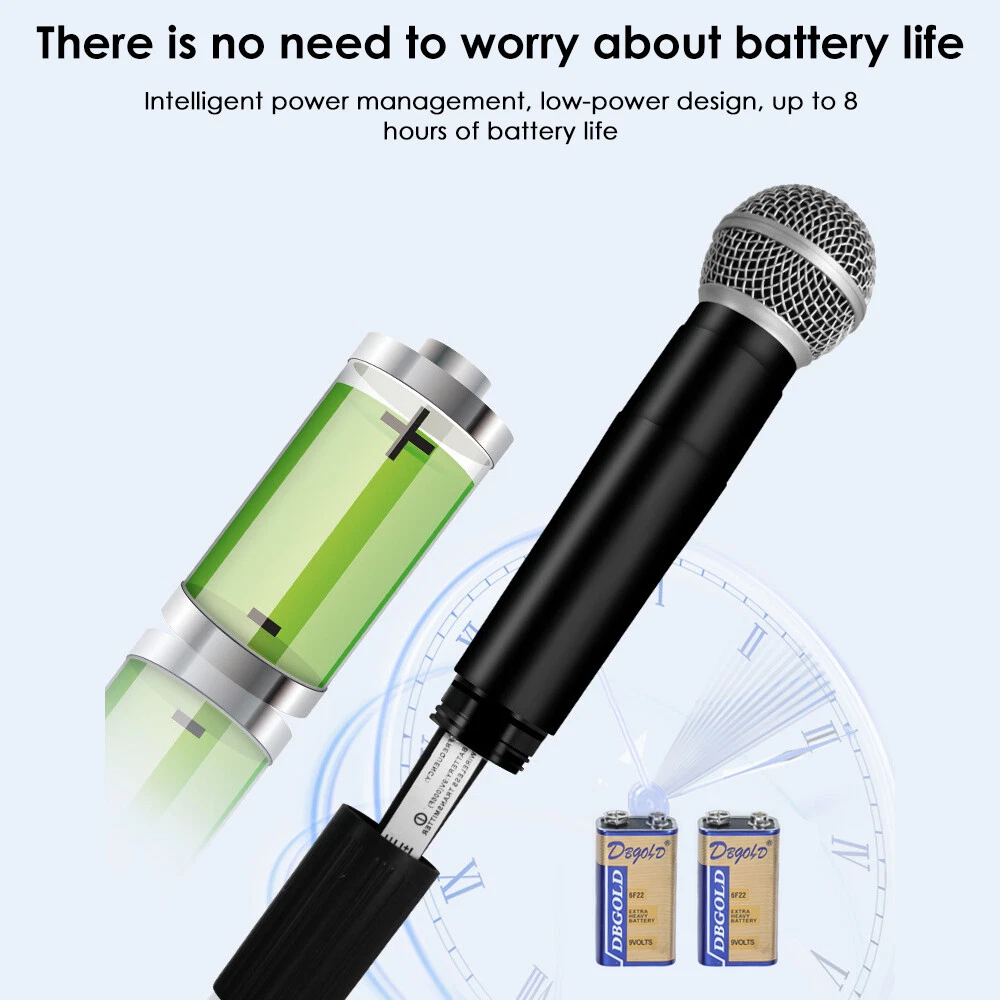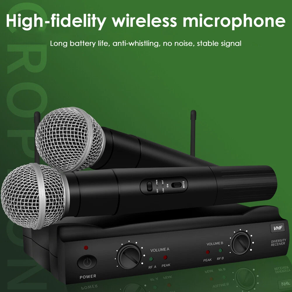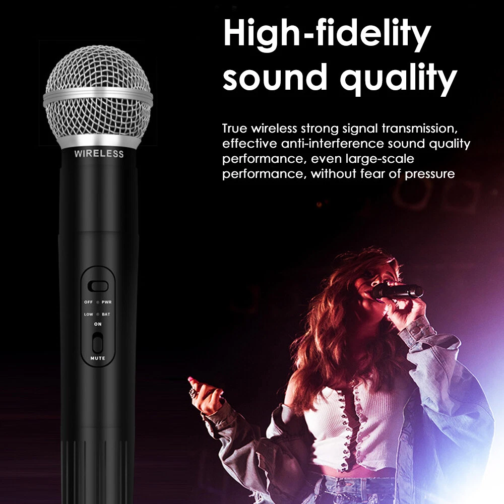 Specifics: Name: one tow two wireless microphone Receiver power supply: DC9-15V200MA Interference ratio greater than 80DB Transmitter power supply voltage: 2 sections of 1.5V battery Modulation mode: FM, F3F Package List: 2 x Handheld Microphones 2 x 2 AA Batteries 1 x VHF Receiver 1 x 6.5MM Connection Cable 1 x US Standard Power Adapter 1 x Manual Features: VHF dual-channel cordless microphone system UT4 receiver wireless vocal karaoke 1.VHF 500 MHZ 1X2 channel receiver, PLL frequency digital synthesis. 2. High fidelity cartridge module. 3. Super anti-interference circuit design. 4.Ultra low background noise. 5,Transmitting range: within 50 meters. 6. Stage performance, conference and lecture, family gathering and singing, outdoor playing, a variety of occasions to use, get rid of site Features: VHF dual-channel cordless microphone system UT4 receiver wireless vocal karaoke 1.VHF 500 MHZ 1X2 channel receiver, PLL frequency digital synthesis. 2. High fidelity cartridge module. 3. Super anti-interference circuit design. 4.Ultra low background noise. 5,Transmitting range: within 50 meters. 6. Stage performance, conference and lecture, family gathering and singing, outdoor playing, a variety of occasions to use, get rid of site restrictions. 7. Support a variety of devices, desktop computers, trolley speakers, laptop computers, card pack speakers, amplifiers, bus vehicles. 8. Dual-frequency design, can be used with two handheld microphone without interference. 9. Intelligent power management, low power consumption type design, up to 8 hours of battery life. Specifics: Name: one tow two wireless microphone Receiver power supply: DC9-15V200MA Interference ratio greater than 80DB Transmitter power supply voltage: 2 sections of 1.5V battery Modulation mode: FM, F3F Package List: 2 x Handheld Microphones 2 x 2 AA Batteries 1 x VHF Receiver 1 x 6.5MM Connection Cable 1 x US Standard Power Adapter 1 x Manual On Aug 1, 2024 at 14:10:59 PDT, seller added the following information: On Oct 8, 2024 at 04:47:07 PDT, seller added the following information: On Dec 5, 2024 at 18:44:15 PST, seller added the following information: On May 13, 2025 at 02:35:31 PDT, seller added the following information: On Jul 16, 2025 at 18:39:13 PDT, seller added the following information:
