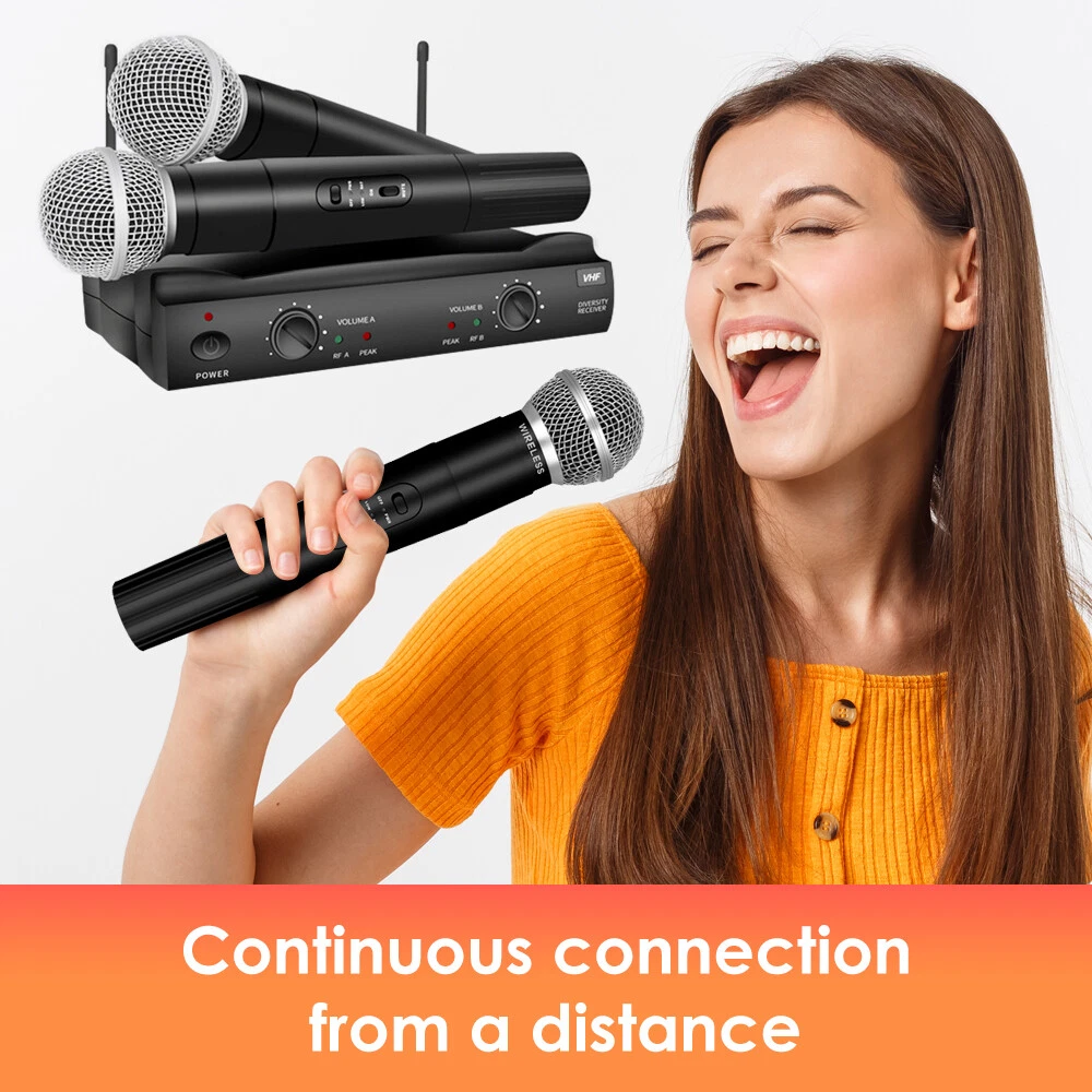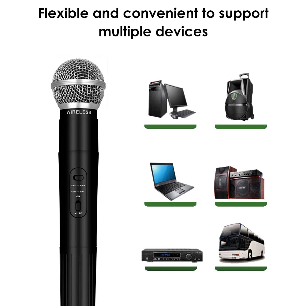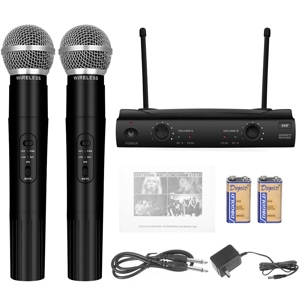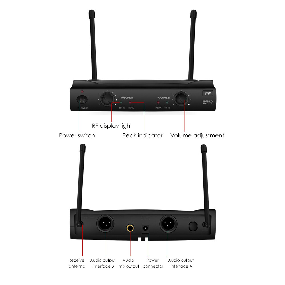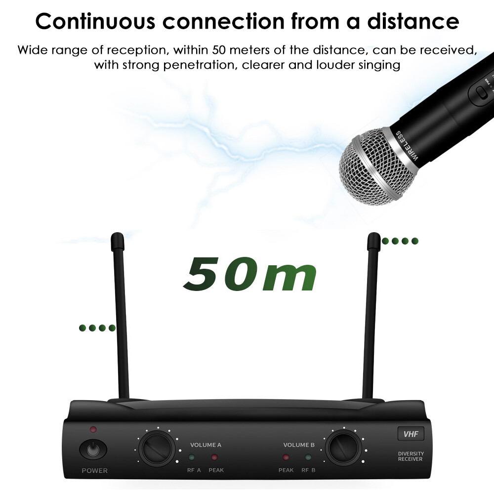Specifics: Name: one tow two wireless microphone Receiver power supply: DC9-15V200MA Interference ratio greater than 80DB Transmitter power supply voltage: 2 sections of 1.5V battery Modulation mode: FM, F3F Package List: 2 x Handheld Microphones 2 x 2 AA Batteries 1 x VHF Receiver 1 x 6.5MM Connection Cable 1 x US Standard Power Adapter 1 x Manual Features: VHF dual-channel cordless microphone system UT4 receiver wireless vocal karaoke 1.VHF 500 MHZ 1X2 channel receiver, PLL frequency digital synthesis. 2. High fidelity cartridge module. 3. Super anti-interference circuit design. 4.Ultra low background noise. 5,Transmitting range: within 50 meters. 6. Stage performance, conference and lecture, family gathering and singing, outdoor playing, a variety of occasions to use, get rid of site Features: VHF dual-channel cordless microphone system UT4 receiver wireless vocal karaoke 1.VHF 500 MHZ 1X2 channel receiver, PLL frequency digital synthesis. 2. High fidelity cartridge module. 3. Super anti-interference circuit design. 4.Ultra low background noise. 5,Transmitting range: within 50 meters. 6. Stage performance, conference and lecture, family gathering and singing, outdoor playing, a variety of occasions to use, get rid of site restrictions. 7. Support a variety of devices, desktop computers, trolley speakers, laptop computers, card pack speakers, amplifiers, bus vehicles. 8. Dual-frequency design, can be used with two handheld microphone without interference. 9. Intelligent power management, low power consumption type design, up to 8 hours of battery life. Specifics: Name: one tow two wireless microphone Receiver power supply: DC9-15V200MA Interference ratio greater than 80DB Transmitter power supply voltage: 2 sections of 1.5V battery Modulation mode: FM, F3F Package List: 2 x Handheld Microphones 2 x 2 AA Batteries 1 x VHF Receiver 1 x 6.5MM Connection Cable 1 x US Standard Power Adapter 1 x Manual On Aug 1, 2024 at 14:10:59 PDT, seller added the following information: On Oct 8, 2024 at 04:47:07 PDT, seller added the following information: On Dec 5, 2024 at 18:44:15 PST, seller added the following information: On May 13, 2025 at 02:35:31 PDT, seller added the following information: On Jul 16, 2025 at 18:39:13 PDT, seller added the following information: