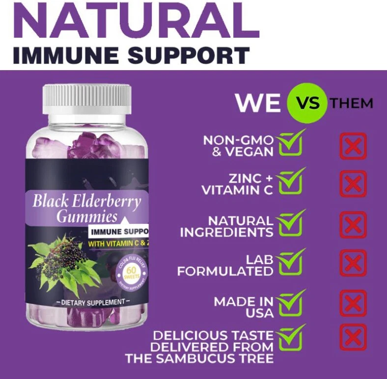 *PREMIUM ELDERBERRY GUMMIES: Nature's Nutrition Elderberry Gummies are a tasty and convenient way to add the immune system support and overall health benefits of the powerful Elderberry extract to your daily routine. *DELICIOUS IMMUNE SUPPORT:Immune support the whole family can enjoy! Ingredients: Elderberry Extract Other Ingredient Directions: As a dietary supplement, take two (2) gummies once a day. Chew gummies thoroughly before swallowing.