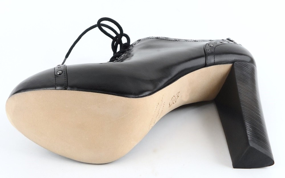 New/ clearance in original box Leather upper; Leather outsole; Leather lining Stacked heel measures 4 1/4" hidden platform 1 1/4" * Lightly padded footbed Lace up style *Measurements are hand taken for every item we sell. Every item is carefully inspected to ensure that you receive a quality product. Designer Shoe Box guarantees this product is 100% Authentic