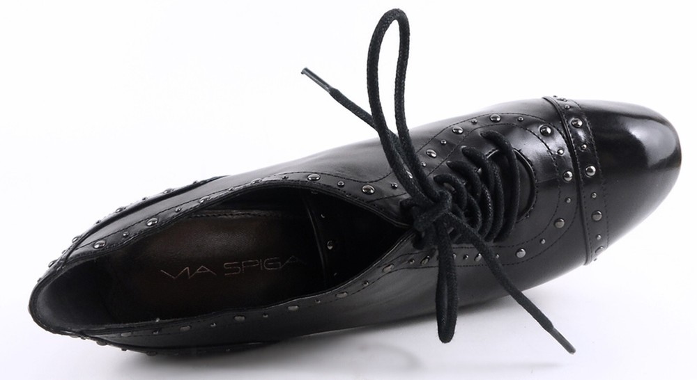 VIA SPIGA Hewitt Black Leather Studded Platform Pumps Size 9 $250