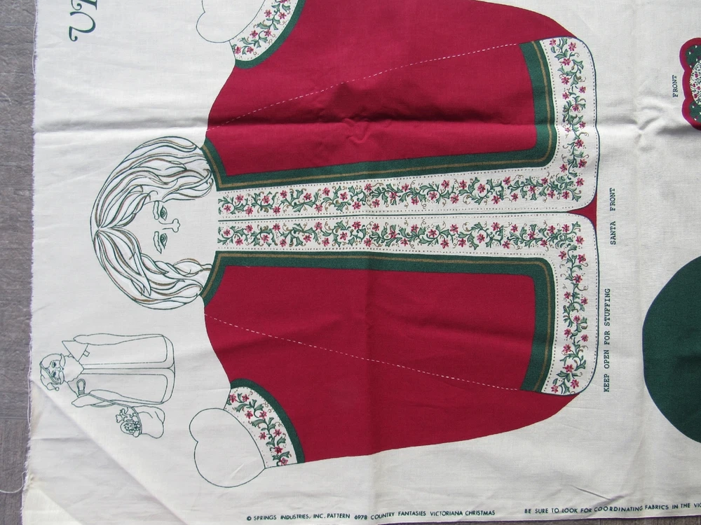 VICTORIANA CHRISTMAS SANTA CENTERPIECE Victorian Holiday Cut & Sew Fabric Panel VICTORIANA CHRISTMAS SANTA CENTERPIECE Victorian Holiday Cut & Sew Fabric Panel "Victoriana Christmas Santa Centerpiece" Fabric Panel from Springs Industries #6978 from the Country Fantasies Victoriana Christmas series Cut & Sew panel for a large Victorian Santa Claus Table Decoration Instructions are printed directly on the fabric panel Approx Size = 16" tall NEW CONDITION Never used or laundered From the stash of an avid quilter / have been stored away for years Clean & odor free from pet & smoke-free home FREE SHIPPING via USPS Pkg SAME or NEXT DAY SHIPPING! Listing and template services provided by inkFrog