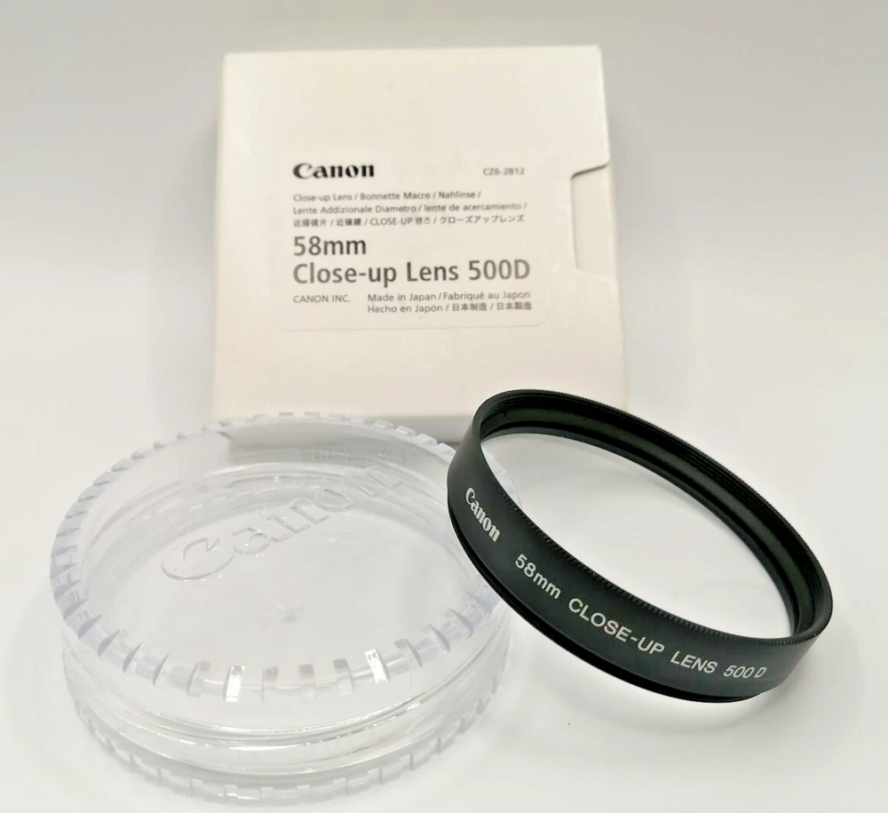 [Top MINT] Canon 58mm Close-up Lens 500 D From JAPAN Description Total Condition; Top MINT Appearance; Appearance is beautiful. *Please check photos. Optics; -Lens: Beautiful condition. There is no fog. There is no fungus. There is no balsam separation. There are no scratches. There are no large dusts. No problem in the shooting. Functional; It works properly. Bundled Items; All you can see on the picture will be included in a set of a package. Above condition is based on my own opinion. Please check the photo carefully. Please feel free to contact me for any questions! Thank you. Shipping I send a product by FedEx International Priority . I attach the tracking number. Please bid it without worrying. Shipping is available from Monday to Friday. Weekends are not available because office is closed. Returns Unconditional Return Policy Customer service and satisfaction are very important to us. I have an unconditional return policy if notified within 30 days of the receipt of the item. All returned items must be the original condition. All return requests must be made within 30 days of the receipt of the item. Please contact me first for return before you ship it back to me. The postage of the returned goods is a seller burden. International Buyers Please Note: Import duties, taxes, and charges are not included in the item price or shipping cost. These charges are the buyer's responsibility. Please check with your country's customs office to determine what these additional costs will be prior to bidding or buying.