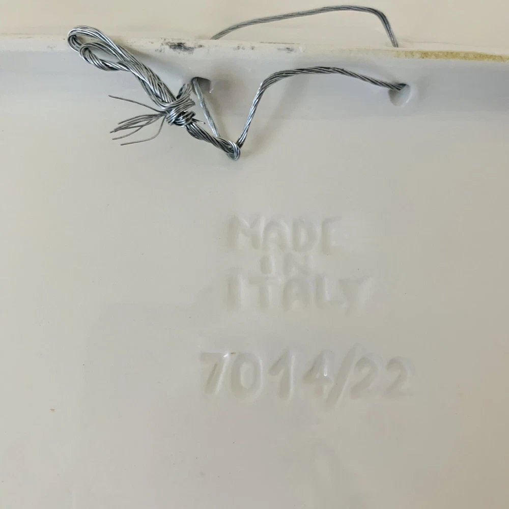 - Vietre Ceramic Plates Disappearing Apple - Set of 4 Square shape with Scallop Edge Approx 8.5x8.5" Cream Red Hand Painted Made in Italy Decorative, Has hanging holes in back to be displayed on the wall