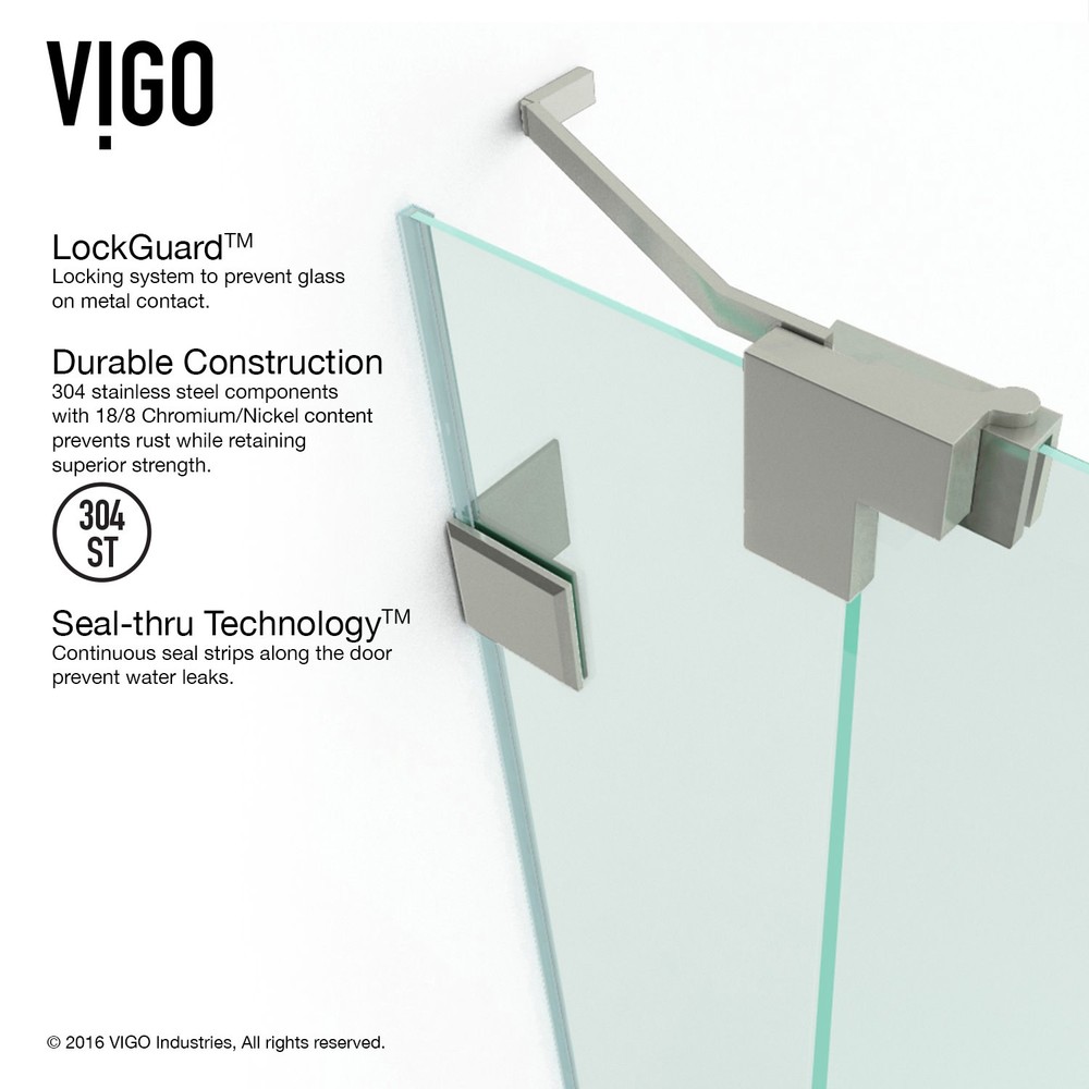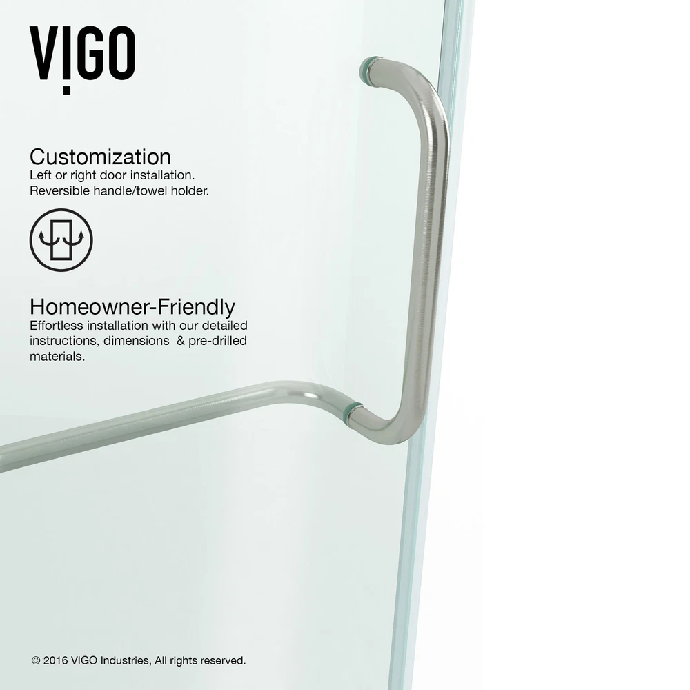 VIGO Pirouette 60" x 72" Pivot Frameless Shower Door Clear / Brushed Nickel