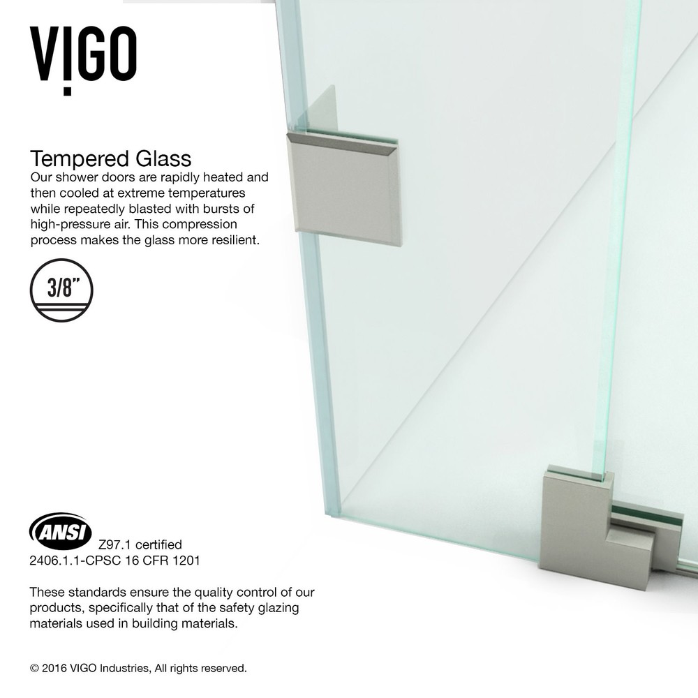 Material: Glass, Bronze, Nickel Model: VG604248 MPN: VG6042ARBCL48 Frame Finish: Brushed UPC: 0816686011304 GTIN: 0816686011304 Frame Type: Frameless Brand: Vigo Glass Style: Clear gtin13: 0816686011304 Opening Mechanism: Pivot Pattern: Wide Type: Shower Door Suitable For: Shower Color: Clear